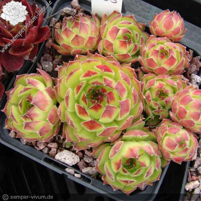 Erwin Geiger: Diese Lokalform stammt aus der Slowakei und wurde dort bei 170m ü.NN gefunden: Eher kugelige, samtene Rosetten von apfelgrüner Färbung mit rosaroten Blattspitzen. Diese Unterart wurde erst vor einigen Jahren als eigene Art beschrieben, aber dann von vielen Botaniker nicht anerkannt. PH1855