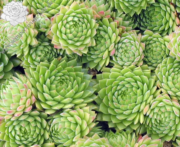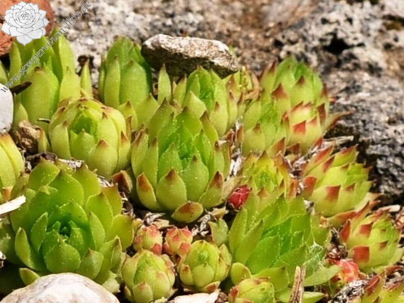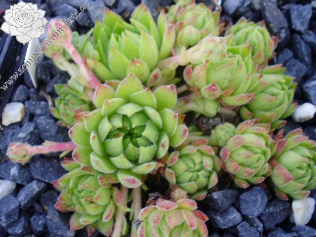 Erwin Geiger: Kleinere, samtige, apfelgrüne Rosetten mit bronzefarbenen Tönen im Frühling und Herbst an vollsonnigen Standorten - sehr wüchsig!