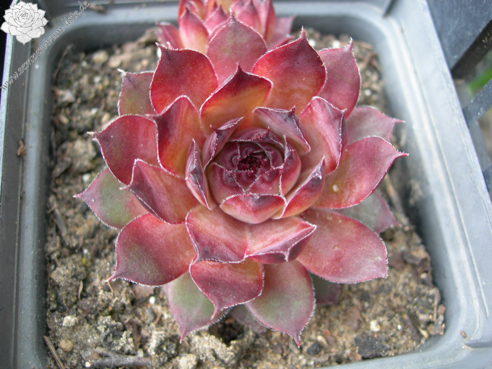 Durchmesser der mittelgroßen Rosetten 6-7cm, im Mai/Juni nehmen sie rötlich-braune Farben mit einem Hauch von Rotwein an, im Sommer verblassen die Farben. Sie vermehrt sich schön.
