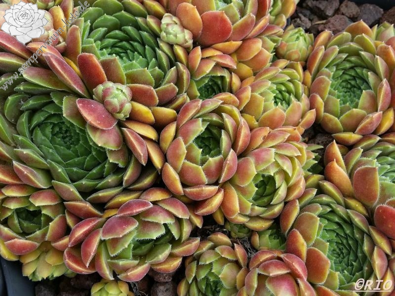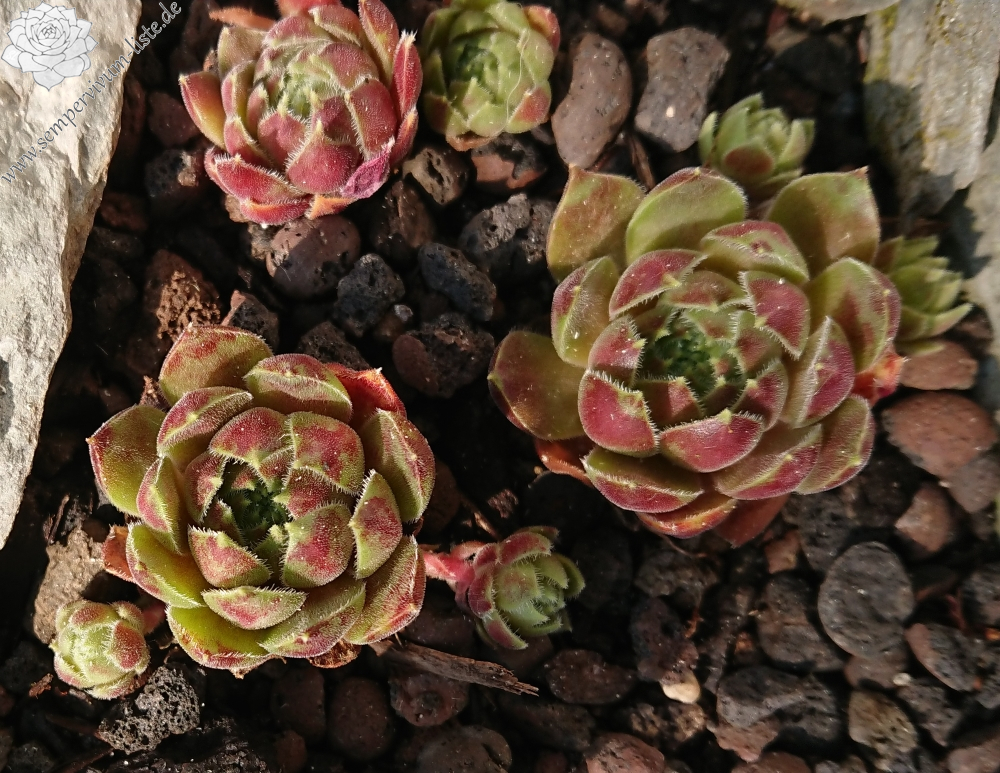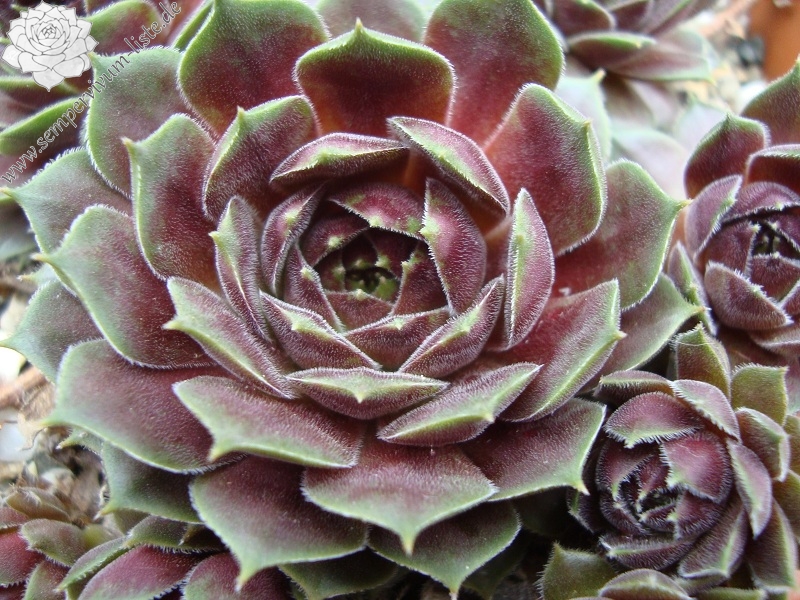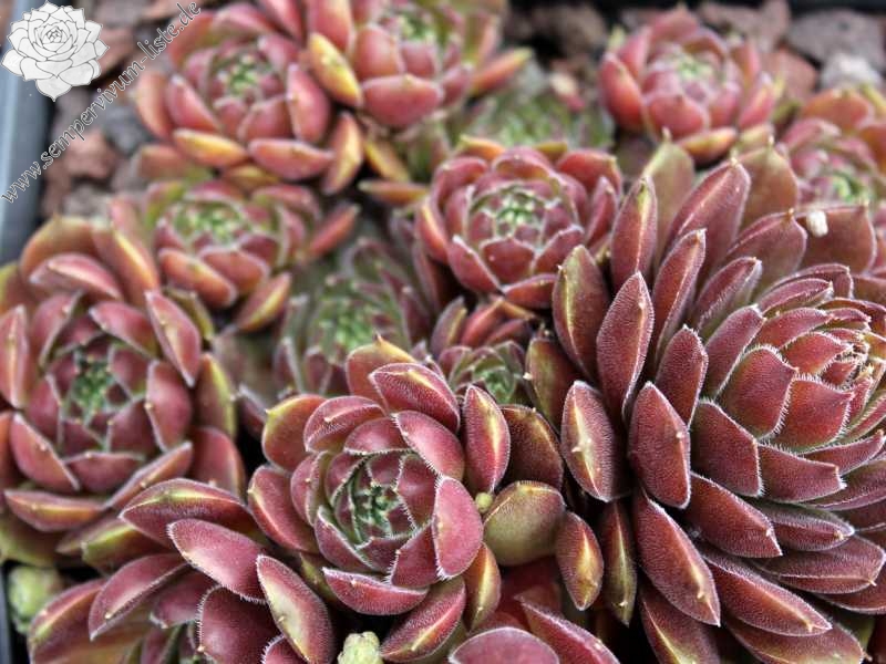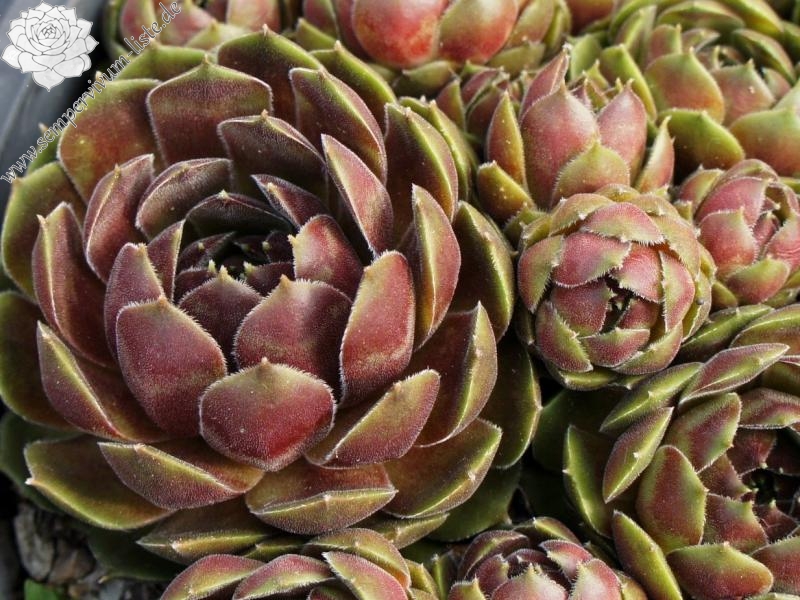 Mittelgroße, samtige Rosetten mit dunkler Färbung. Im Frühling lila-rot, zum Sommer hin grün-rotes Laub mit grünen Blatträndern. Gut wüchsig!