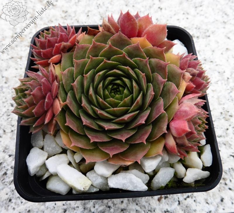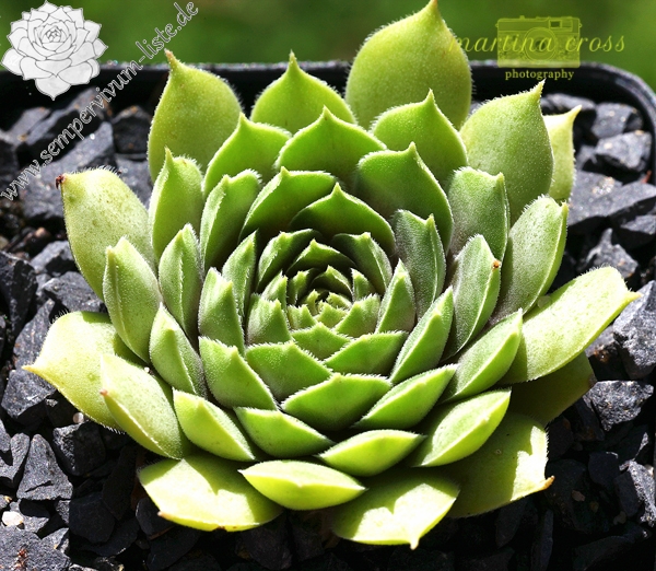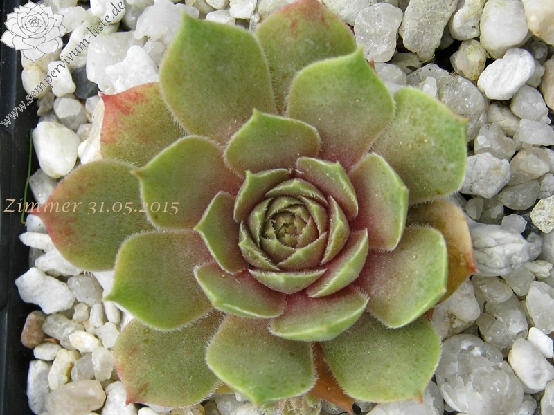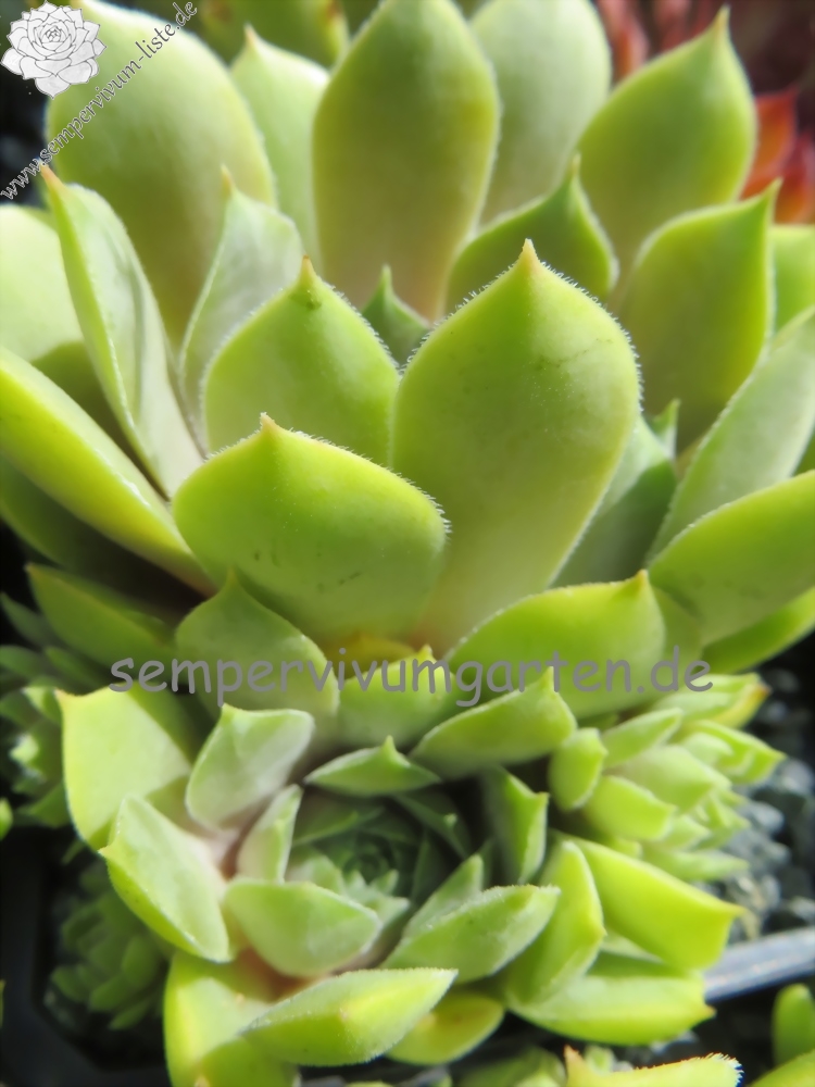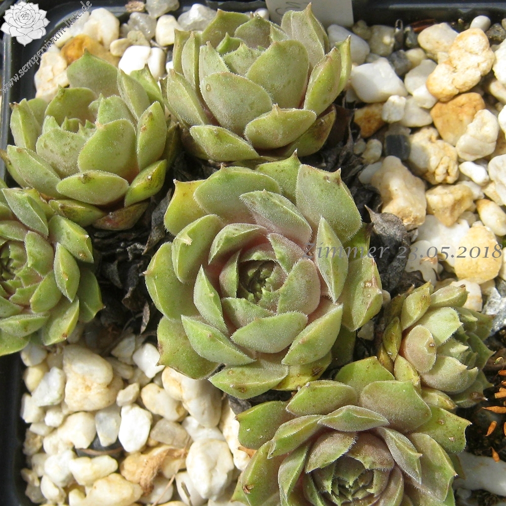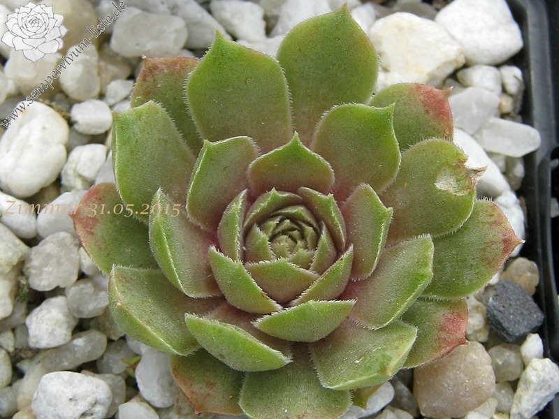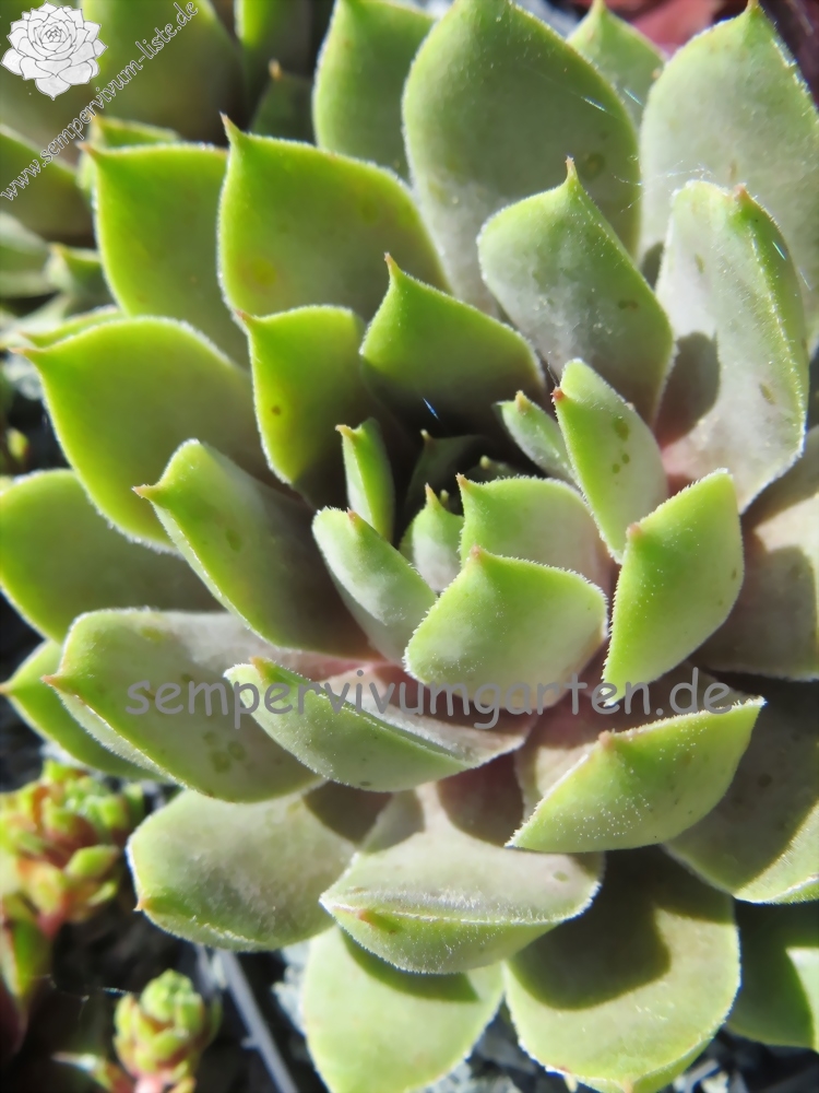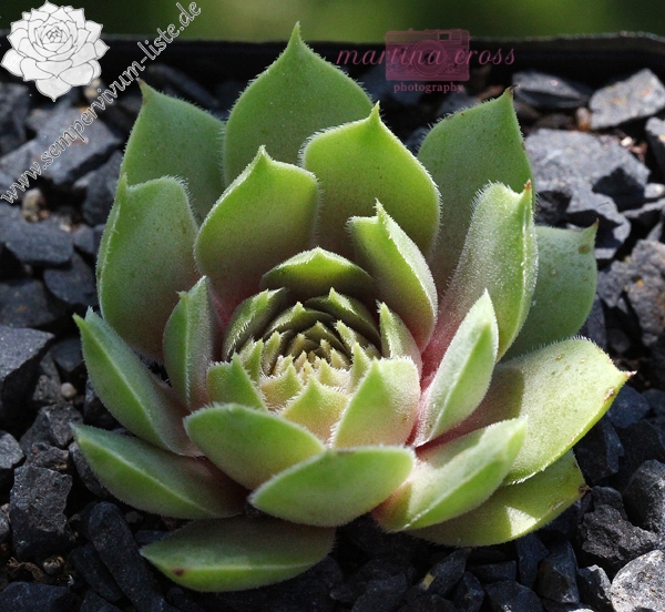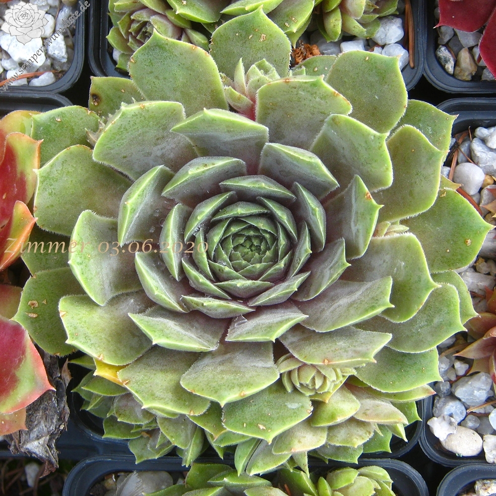 Sempervivum 'Mint Frosting' ist eine kühle Erscheinung. Die mittelgroßen Rosetten besitzen bläulich-grüne Rosetten und am Blattansatz eine leichte Rotfärbung.