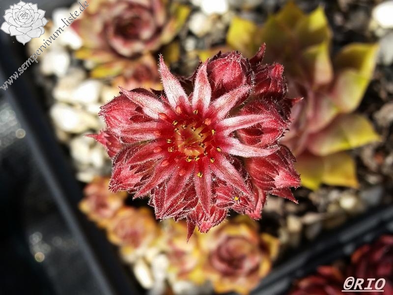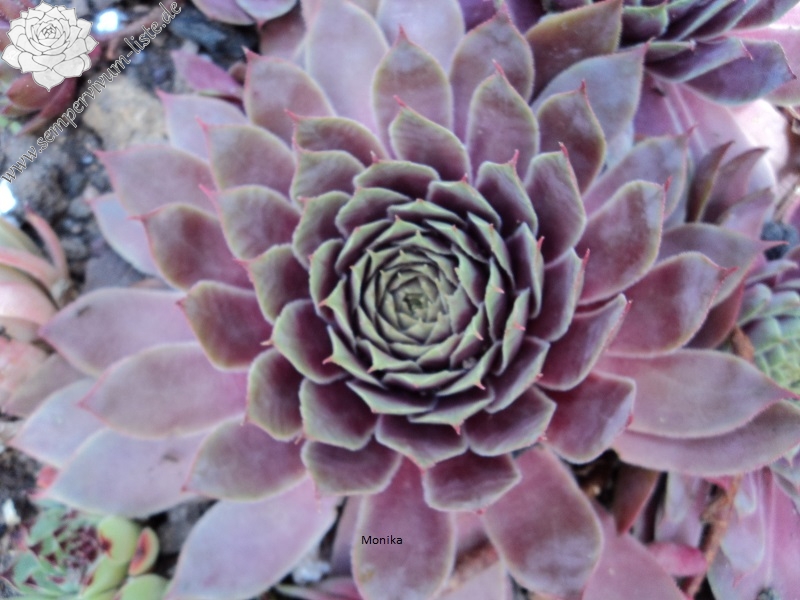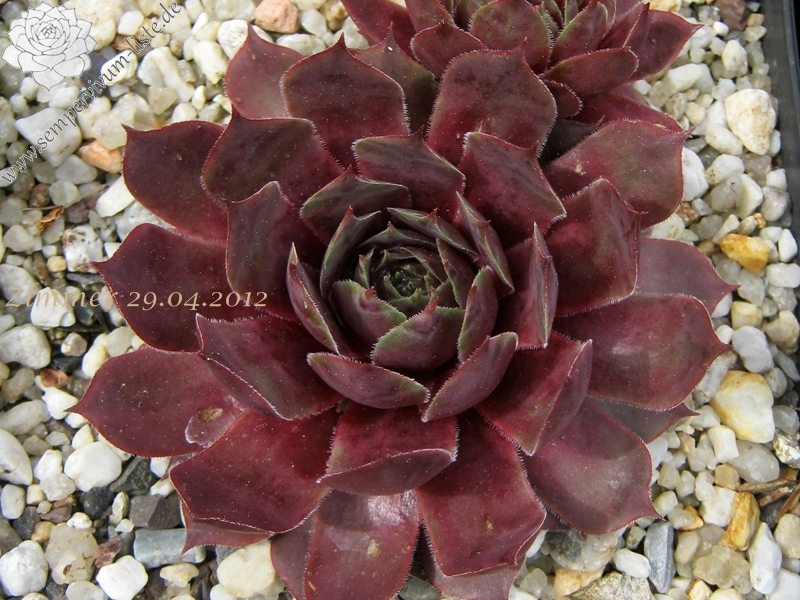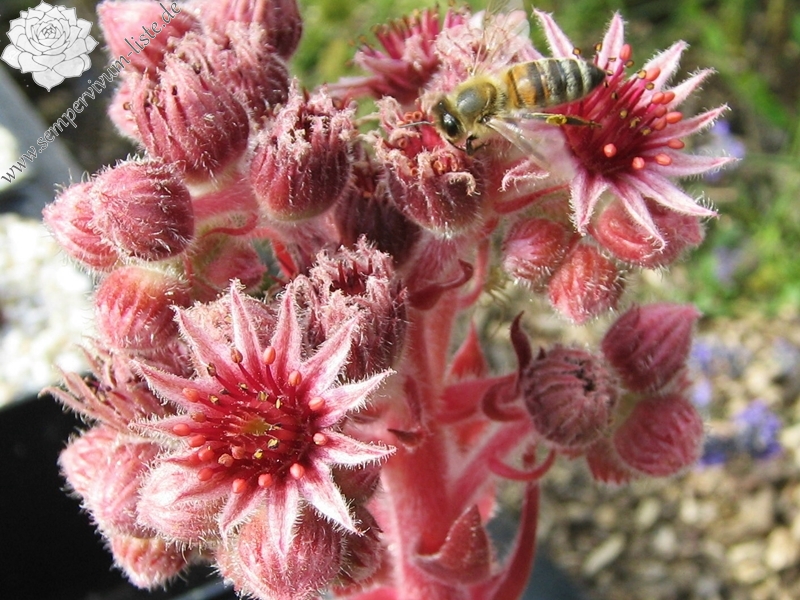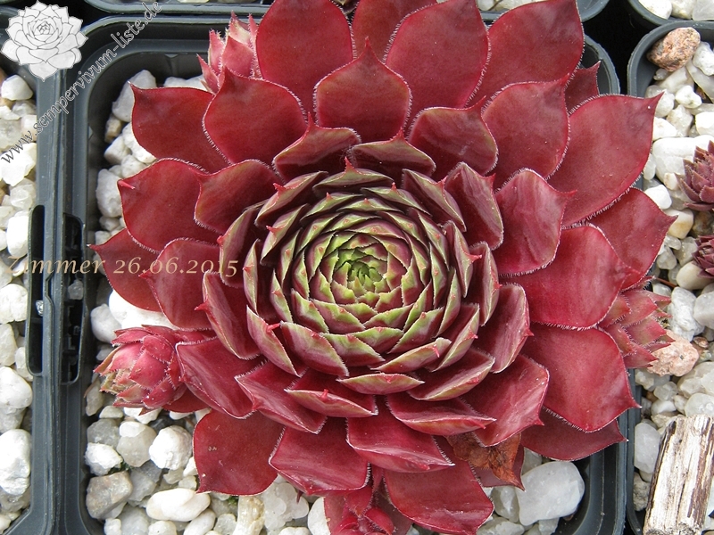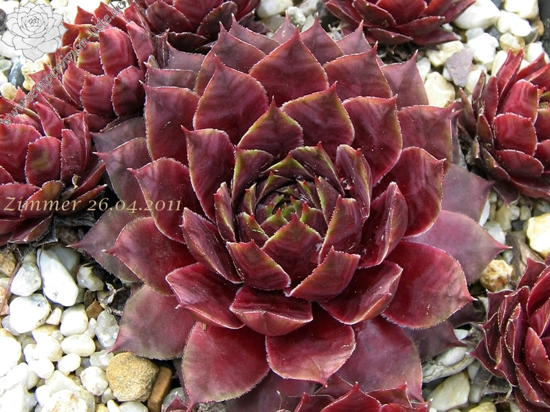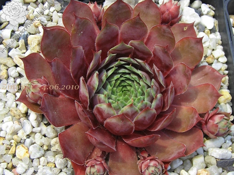 Große Rosetten mit roten Tönen. Eine relativ neue Hybride aus Deutschland mit großen Rosetten in verschiedenen roten Tönen geschmückt. Auffallend in der späten Jahreszeit ist die knospige Mitte in pastellgrüner Farbe. Vermutlich von S. wulfenii vererbt.