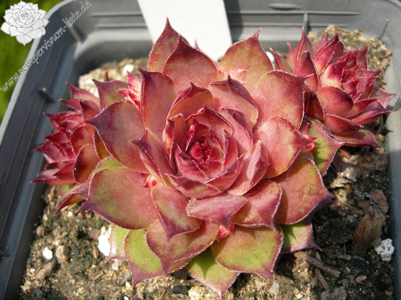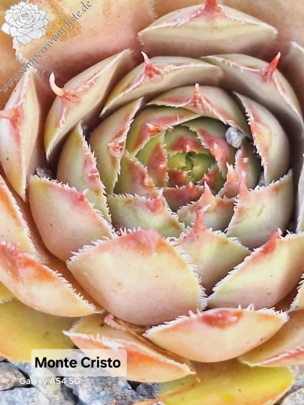 MONTE CHRISTO Sämling aus 2021/23 (Erscheinungsjahr 2023) Mutter 'Mandala'. Ein sehr hübscher Sämling mit einem erstaunlichen Muster auf der Außenseite der Blätter. Im Frühling erstrahlt der Sämling im wahrsten Sinne des Wortes, man wird nicht gleichgültig an ihm vorbeigehen. Im Sommer verblassen die Farben. Die Rosetten haben einen Durchmesser von ca. 6 cm. Foto vom 14.05.23. Nennen Sie Alexandre Dumas „Der Graf von Monte Christo“