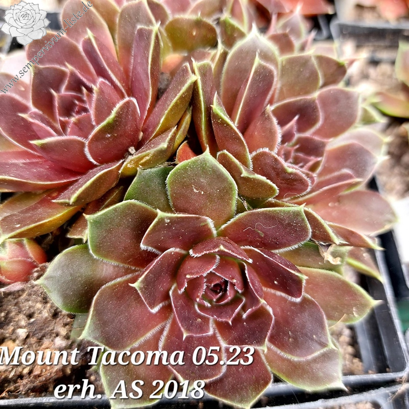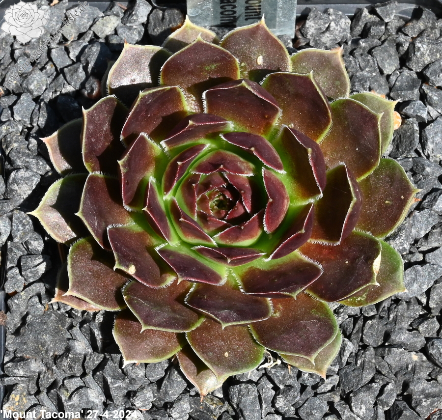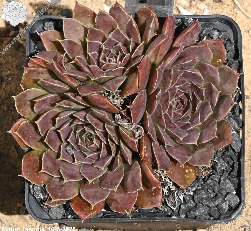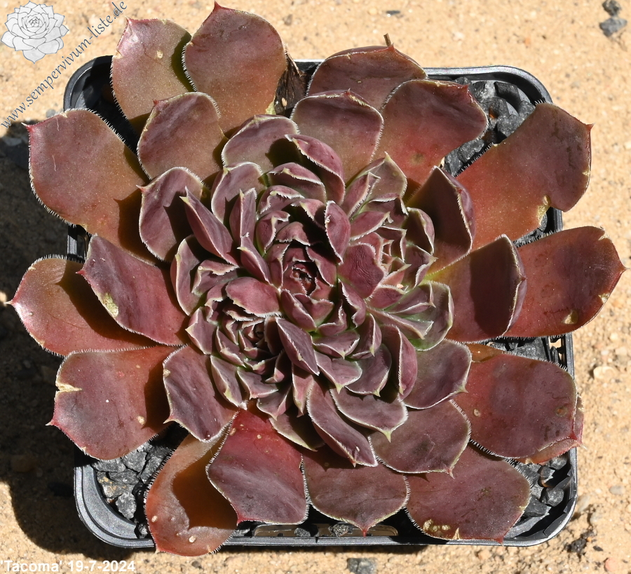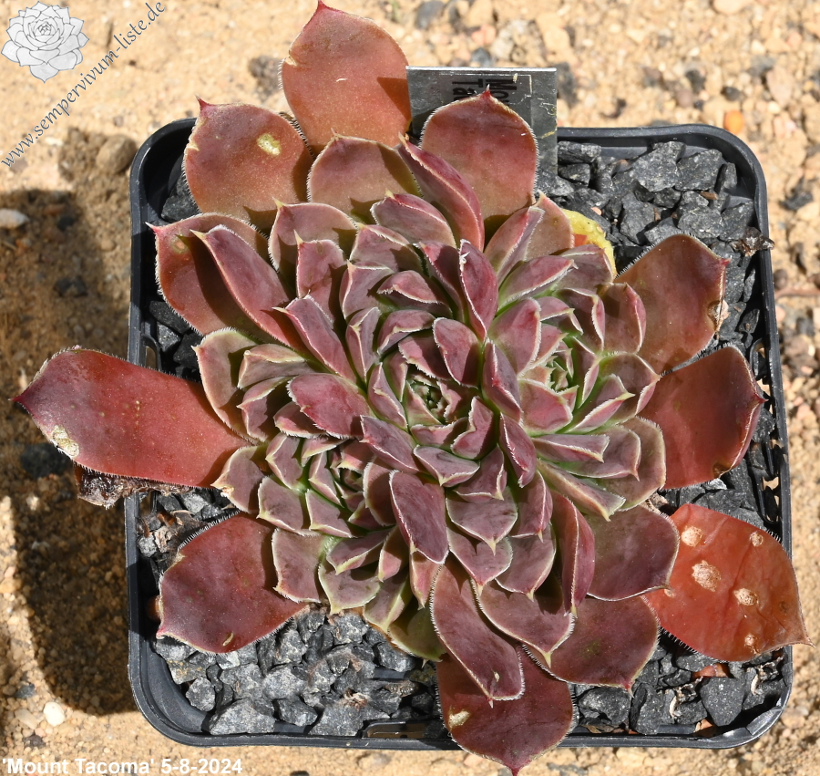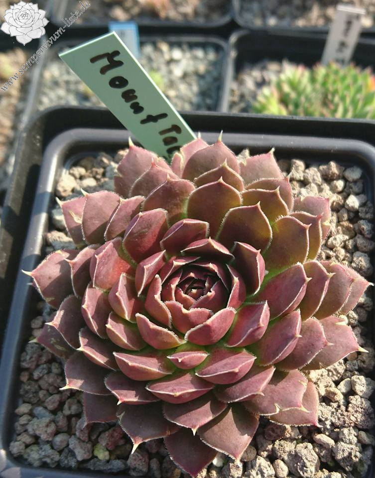 Rosetten 5 cm, keilförmige Blätter, kurz bespitzt, dunkles Weinrot