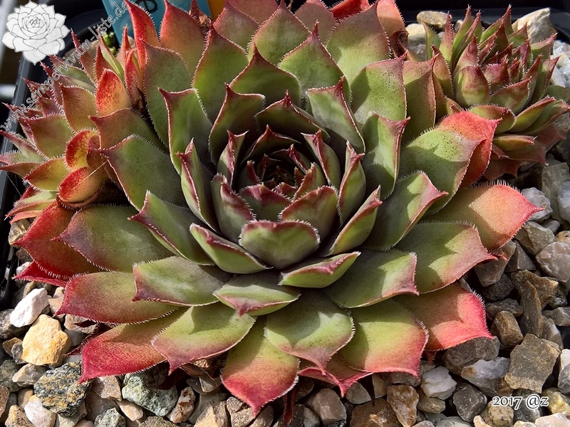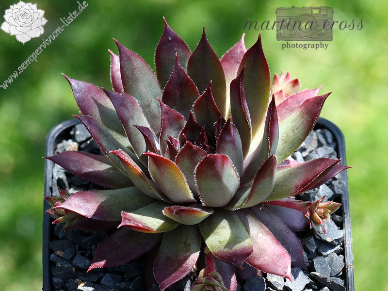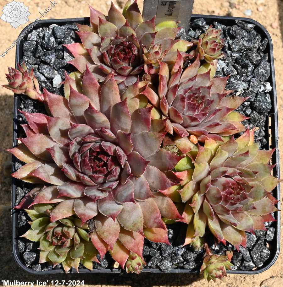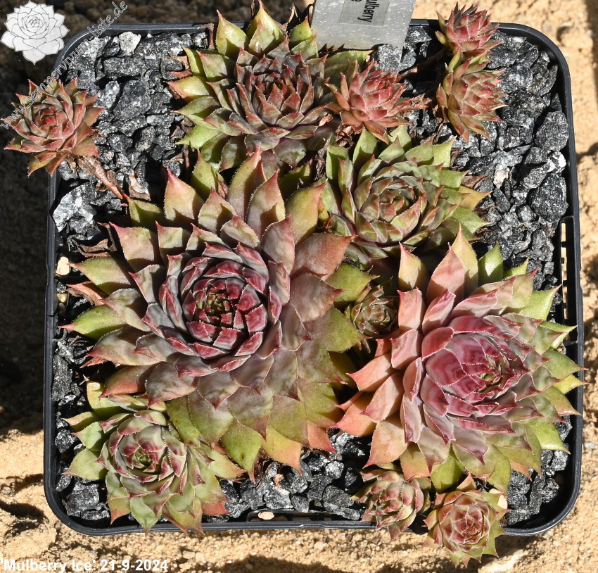 Sempervivum 'Mulberry Ice' bildet größere Rosetten, in einer kühlen Farbe. Die länglichen Blätter sind schmal und besitzen dunkle Blattenden. Eine wüchsige und unempfindliche Pflanze.