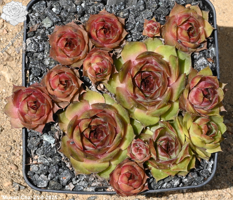 Sempervivum 'Mudan Cha' ist ein wirklich einzigartiger Hauswurz, die André gezüchtet hat. Die mittelgroßen, fast runden Rosetten besitzen nur wenige, auffallend dicke Blätter. Die hellen, sehr weichen Farben verleihen den Pflanzen einen ganz besonderen Scharm. Ein sehr interessante Pflanze! Leider sprossen die Pflanzen nur schwach, daher stehen immer nur wenige Rosetten zur Verfügung!