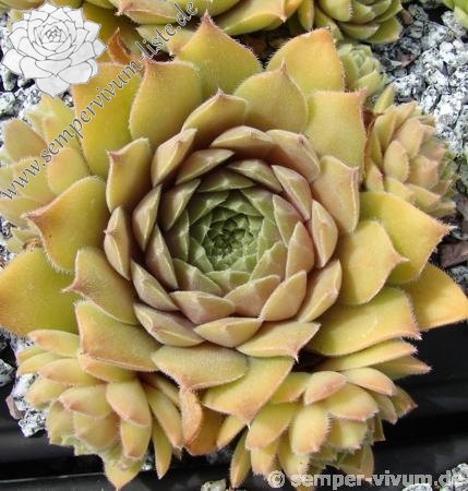 Ein Stern der 70er Jahre aus der Hand von Edward Skrocki mit größeren, recht sukkulenten Rosetten von samtiger Textur. Die Blattfärbung mischt sich während des Jahres mit pastelfarbenem Ocker, Olivgrün und Rosa.