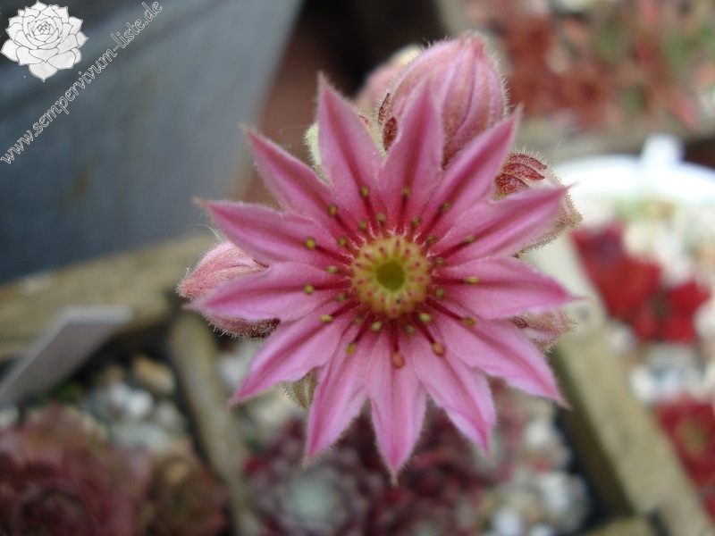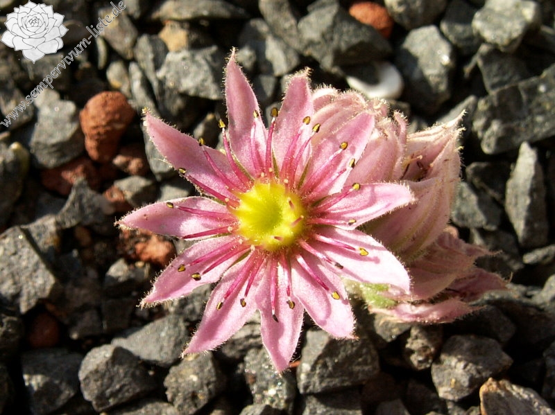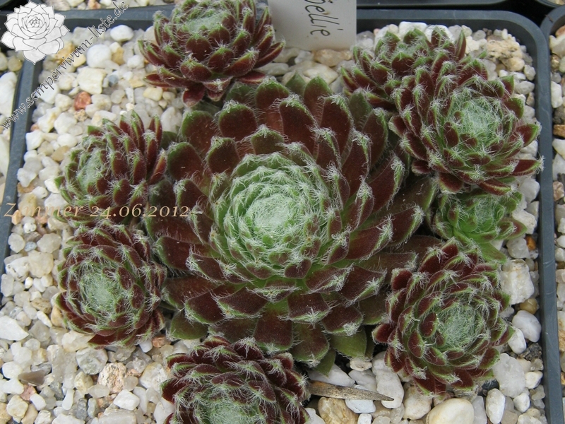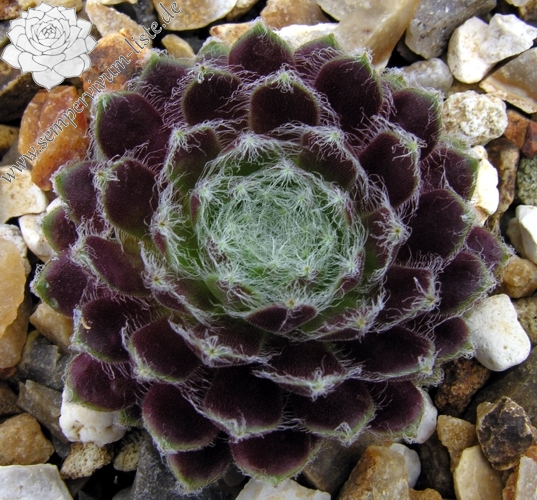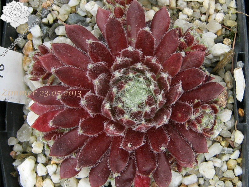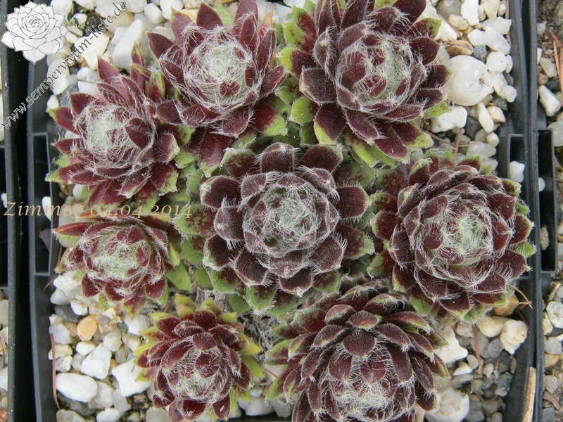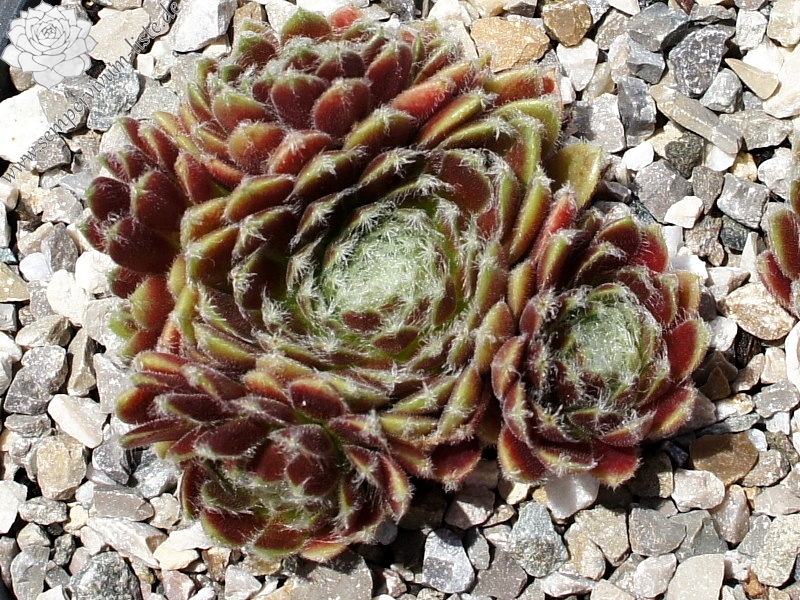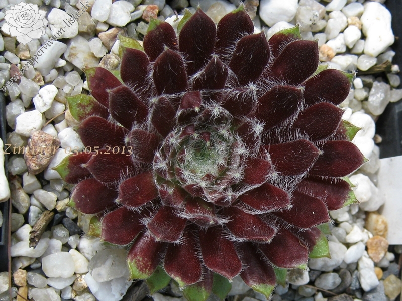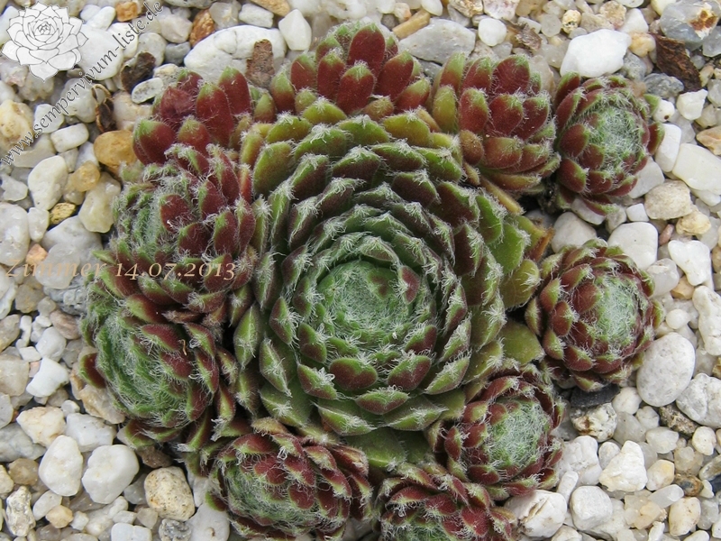 Eine größere Pflanze, die dichte rote Polster bildet. Die Blattspitzen sind stark bewollt.