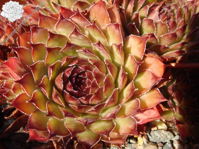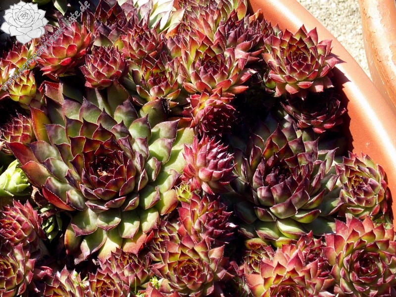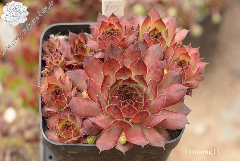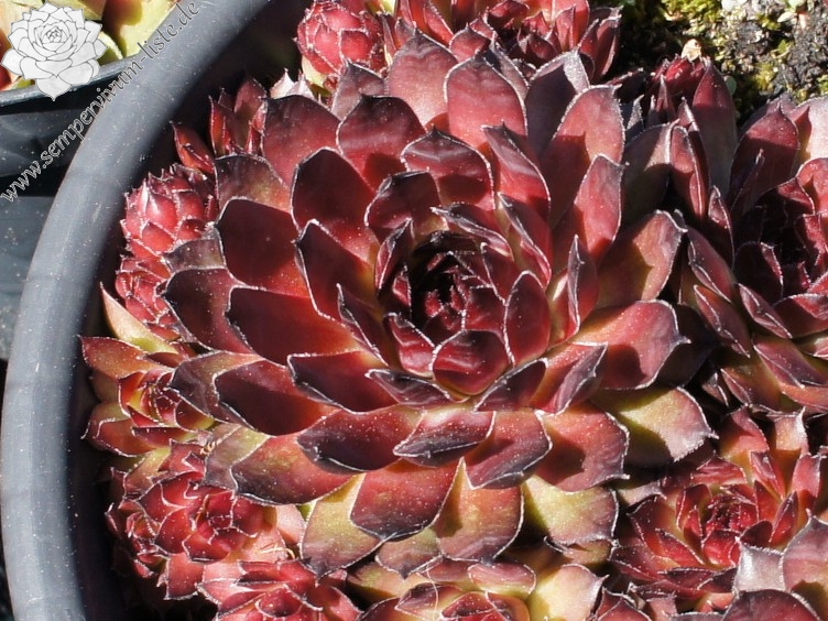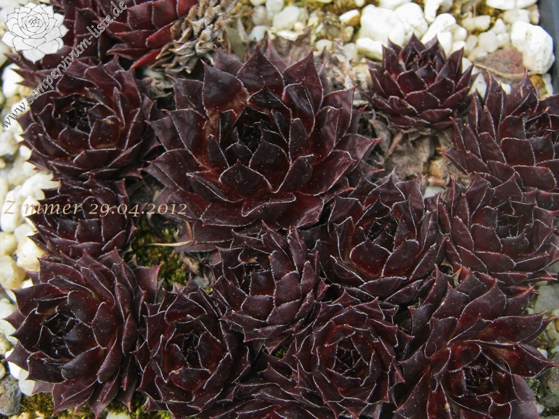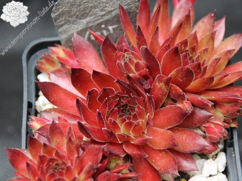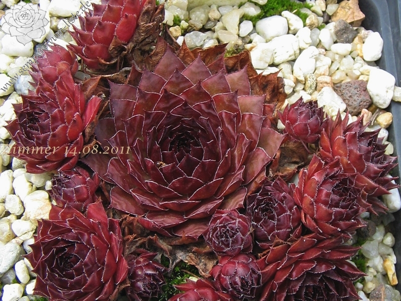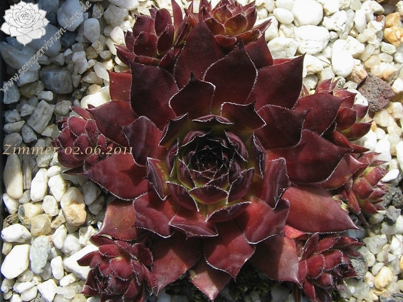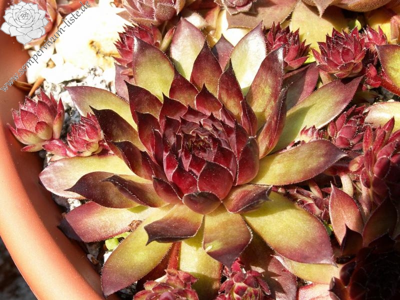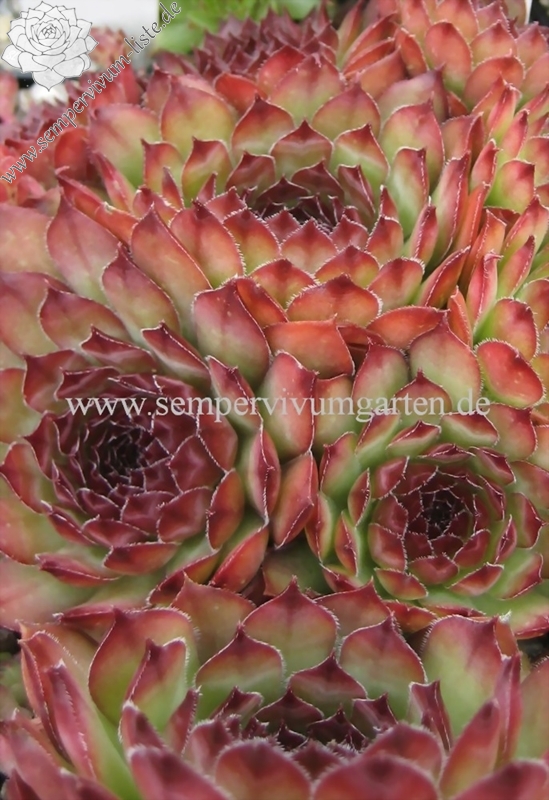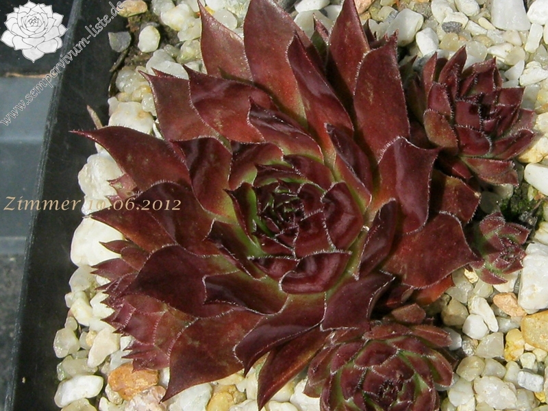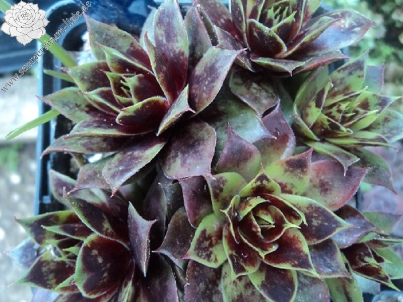 Eine englische Hybride mit S. marmoreum und S. tectorum aus den 50er Jahren. Unter diesem Namen sind mindestens zwei verschiedene Pflanzen in Kultur. Sie erhalten die attraktivere Form der beiden, die man am häufigsten in den Sammlungen findet. Sie hat die breiteren Blätter und ihre Frühjahrsfärbung ist dunkler als die des Konkurrenten. Dieser widerum sieht aus wie 'Alternberg'.