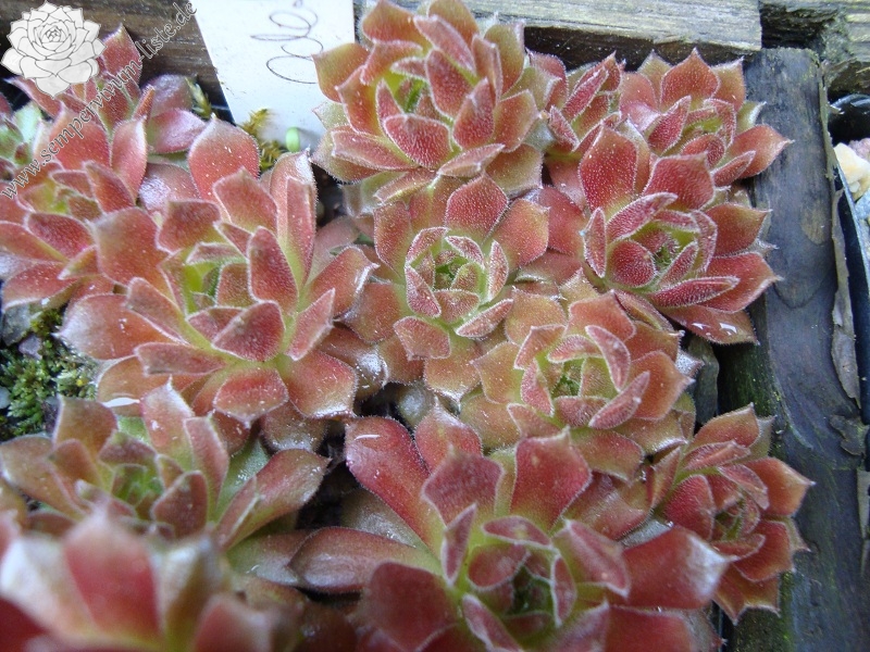 Eine hübsche, belgische Hybride mit apfelgrünem Laub. Zum Frühjahr verfärben sich die Blattspitzen in pfirsichfarbenes Rosa. Die Rosetten sind samtig behaart - vermutlich mit S. grandiflorum Blut.