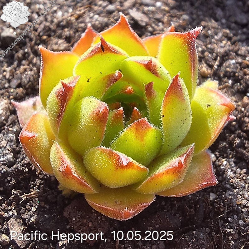Slightly velvet bright green rosettes with highlighted tips. Medium. Gary Gossett. (Summer photo)