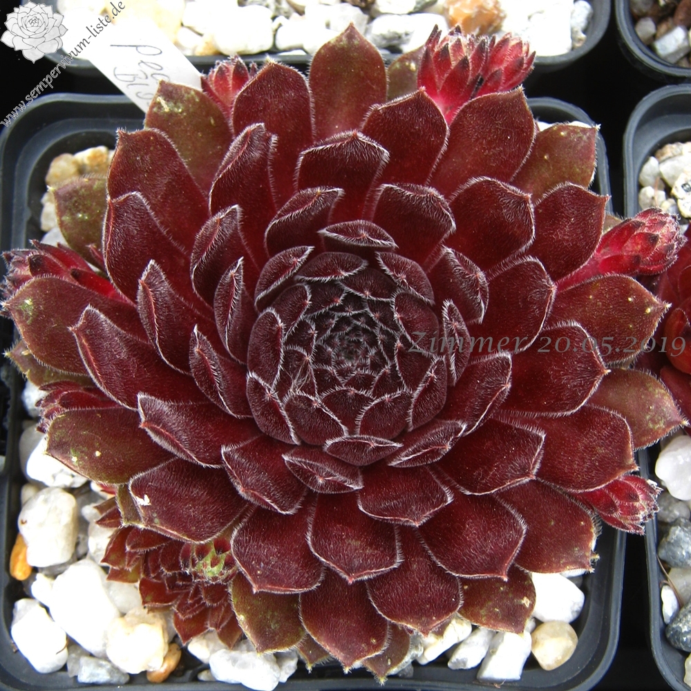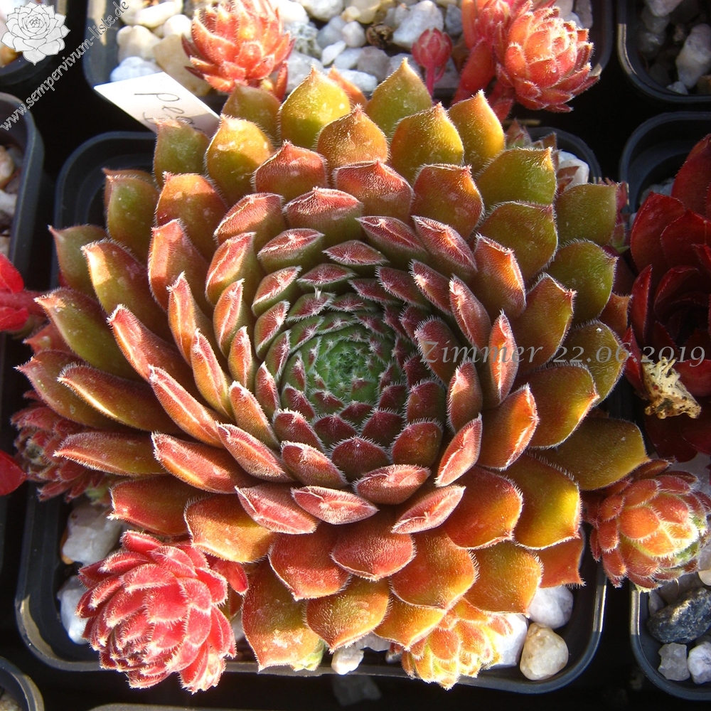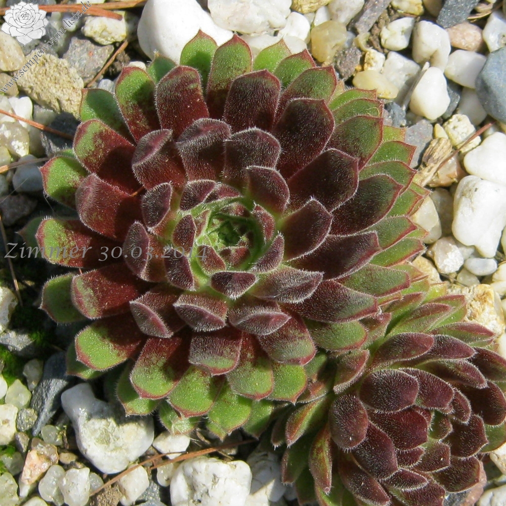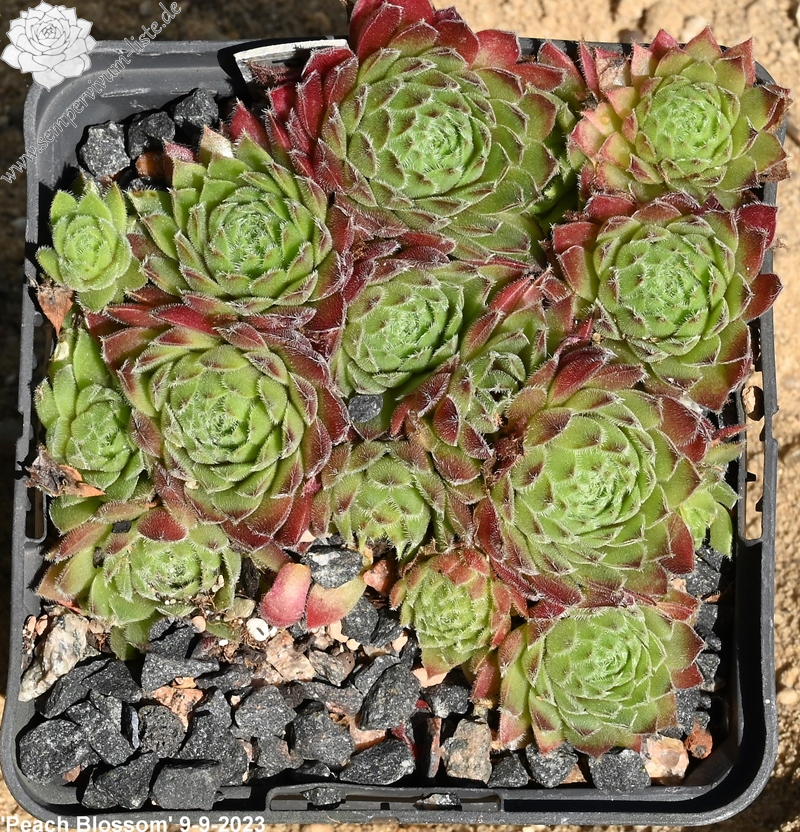 Ein hübscher Sämling von S. marmoreum ssp. erythraeum mit samtigen, mittelgroße Rosetten mit pfirsichfarbener Frühlingsfärbung.