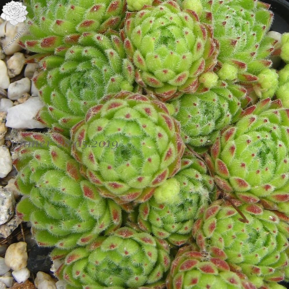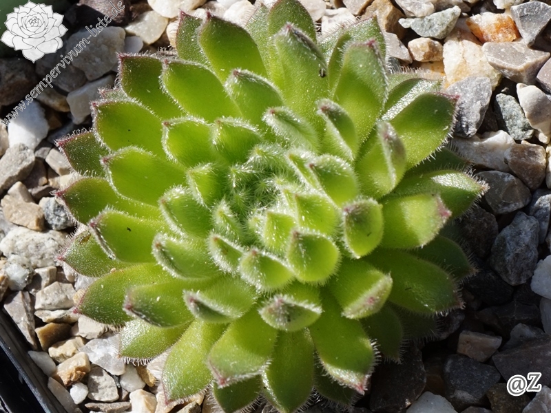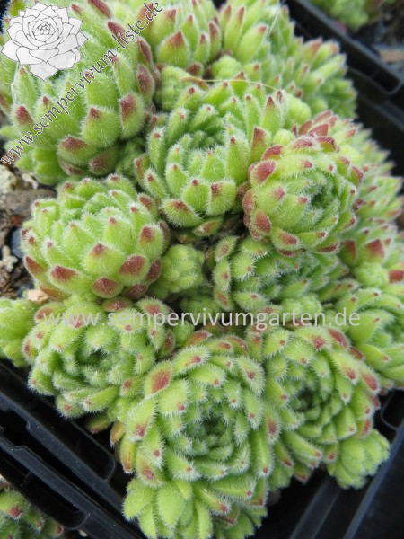 Sempervivum 'Peridot' ist ein mittelgroßer, hellgrüner Hauswurz. Die leuchtend roten Blattspitzen heben sich deutlich von der hellgrünen Grundfärbung ab. Die Rosetten sind leicht behaart und wirken leicht flauschig. Es handelt sich um eine schöne Züchtung. Im Winter sollte ein zu feuchter Standort vermieden werden - eine interessante Liebhabersorte!