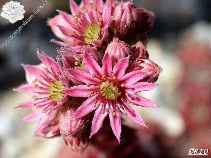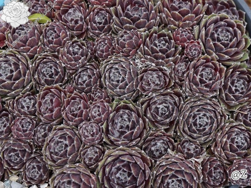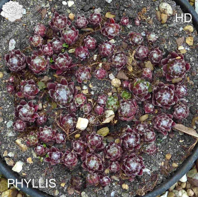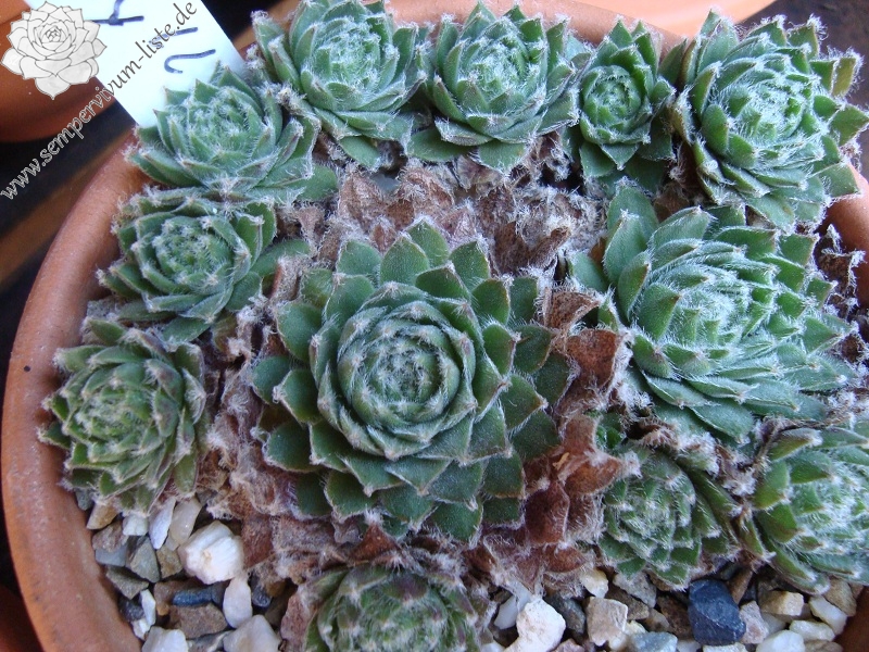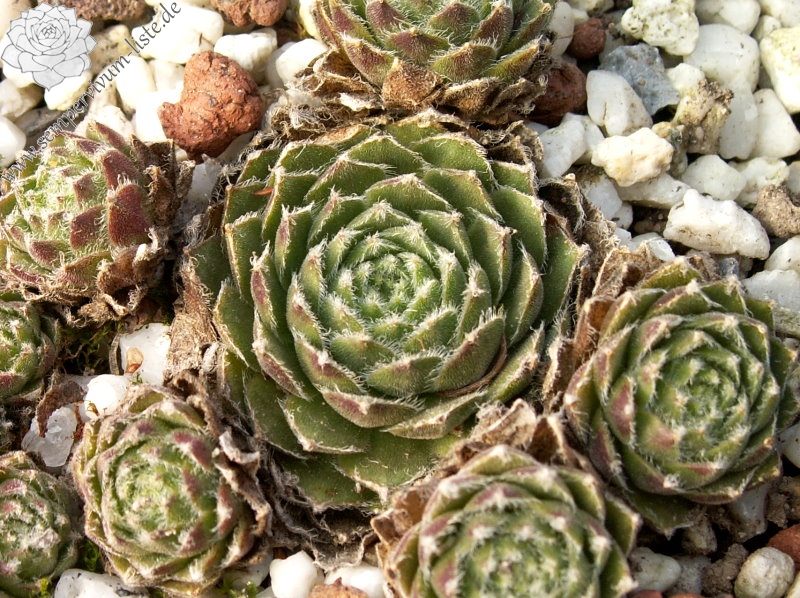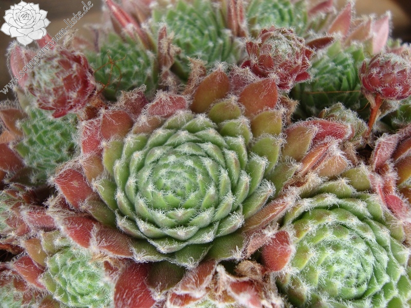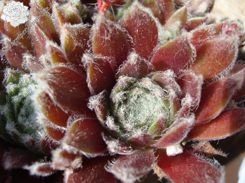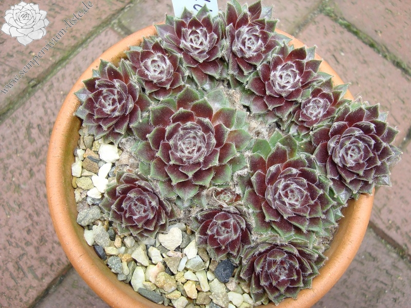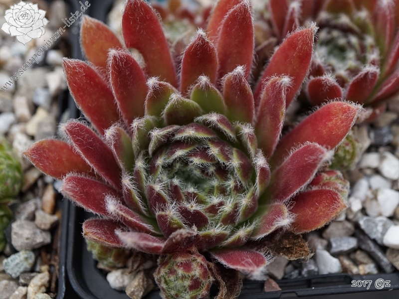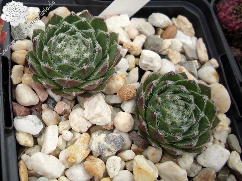Rosetten bis 4 cm, samtige Substanz, Blätter linealisch, kurz bespitzt, blasslila - rotbraun, stark bewimpert, an den Blattspitzen kleine Haarbüschel