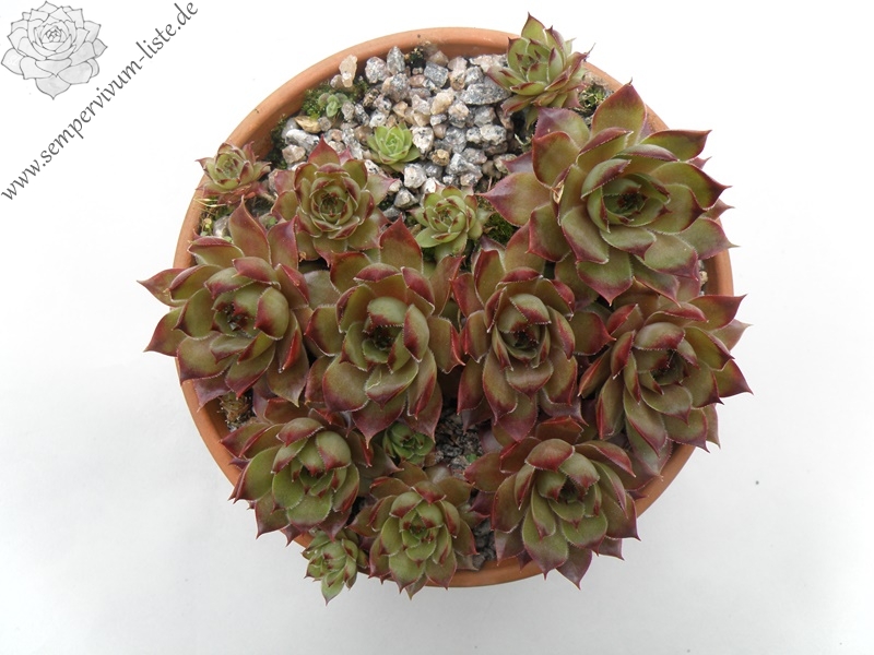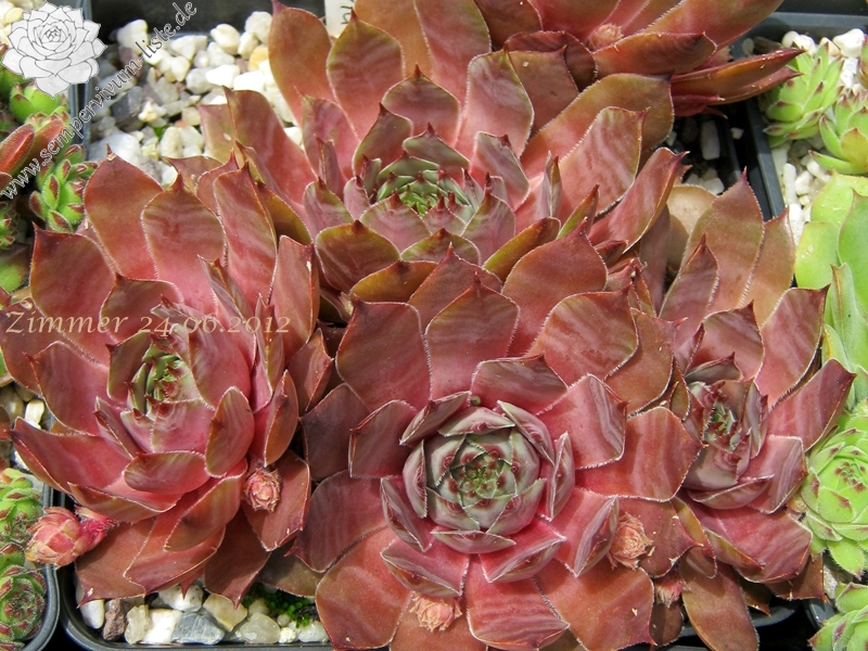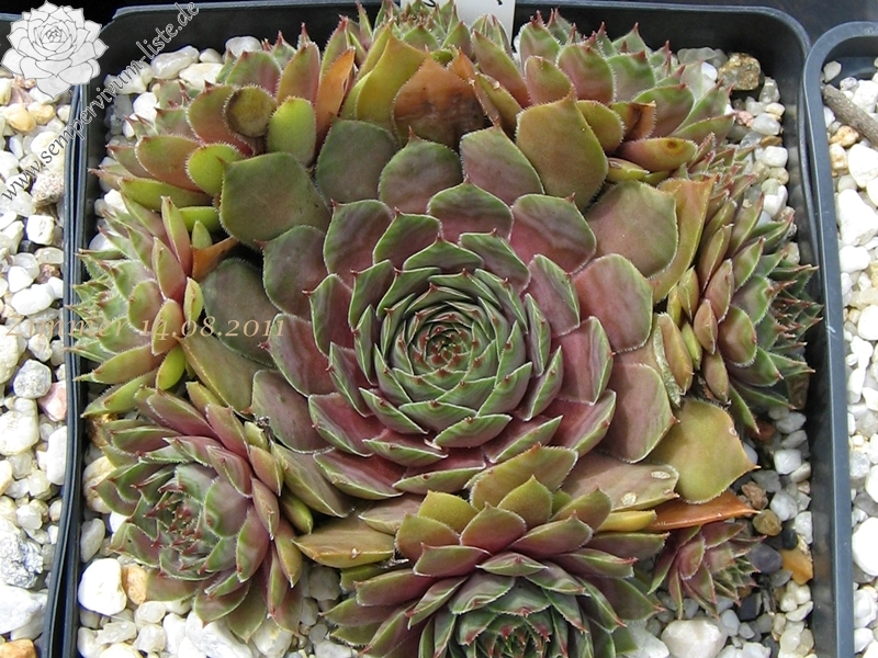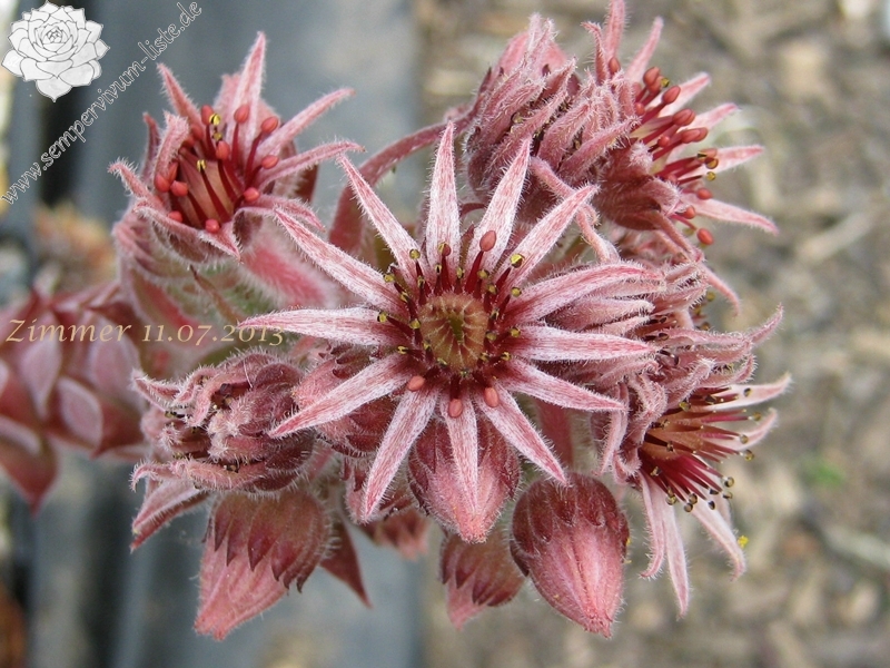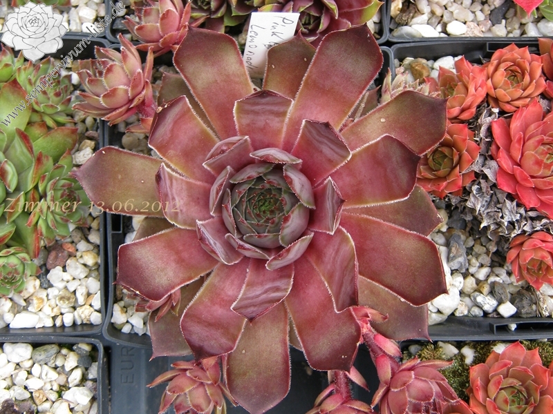 Eine amerikanische Hybride mit typischer Form, die in den 70er Jahren ausgelesen und benannt wurden. S. 'Pink Lemonade' formt recht große Rosetten mit S. tectorum Blut. Die Färbung reicht von Violet, Lachs, Purpur mit leicht bräunlichem Ton.