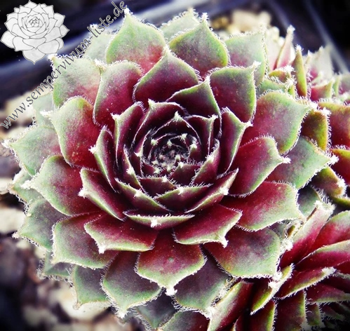 Nice gray-green rosettes with dark maroon centers. Lots of cilia on the leaf margins. Large. David Ford, 1982. (Spring photo) USDA Zone 4-5.