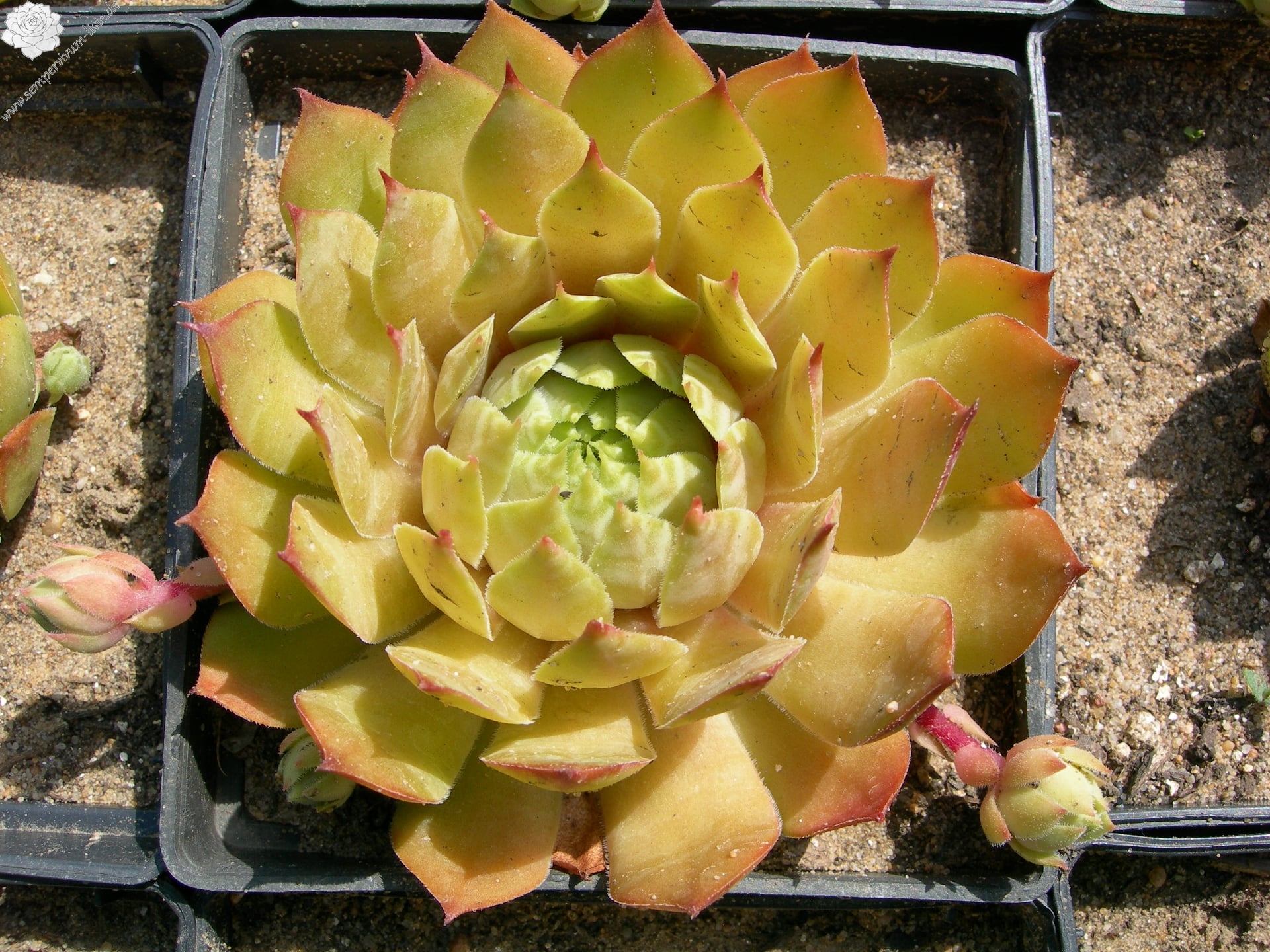 PTEROIS - moja własna odmiana z siewu 2010r. Rozety duże osiągają średnicę ok 13cm. Wiosną mają limonkowy kolor z czerwonymi końcówkami, środek lekko różowy. Latem kolor blednie do limonkowego, prawie żółtego, czerwone końcówki są mniej wyraźne lub zanikają. Odmiana bardzo dobrze przyrasta. Nazwa od ubarwienia tropikalnej ryby Skrzydlicy.