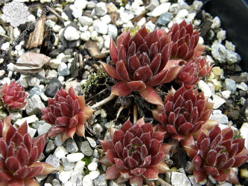 Kleiner arachnoideum-Typ (?), der samtige Rosetten besitzt. Im Winter sind die Pflanzen sehr dunkel!