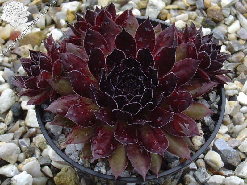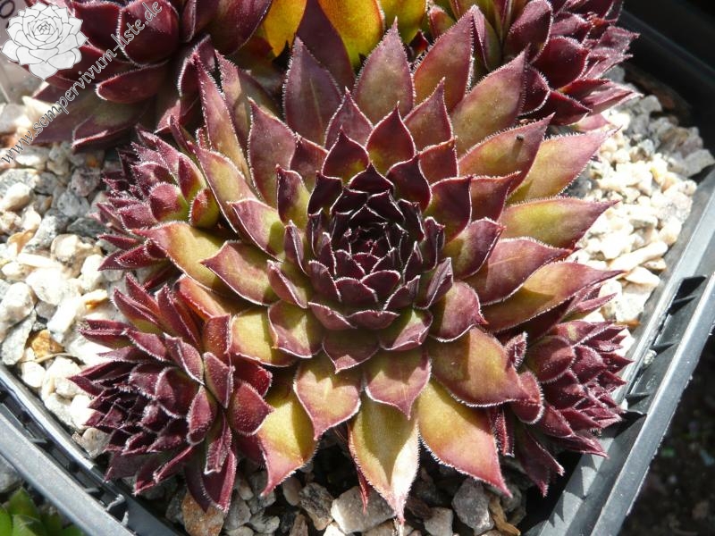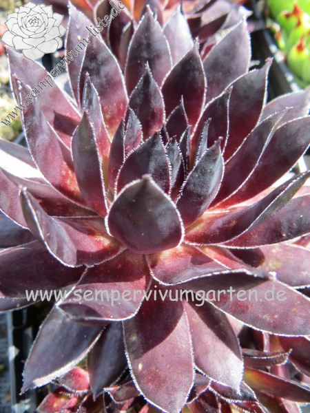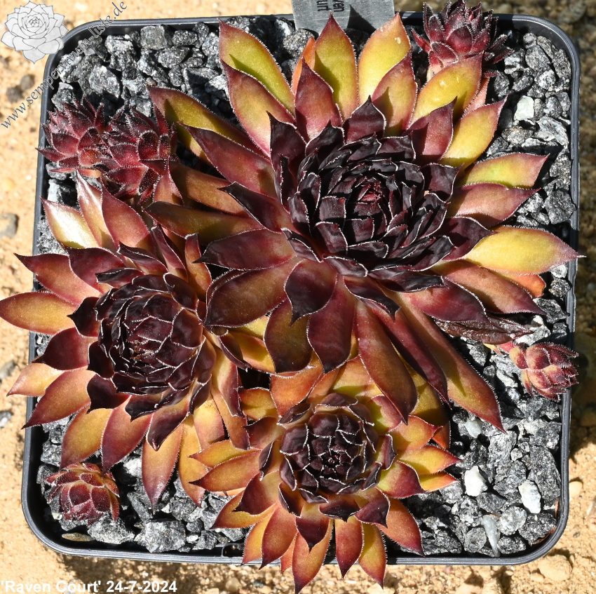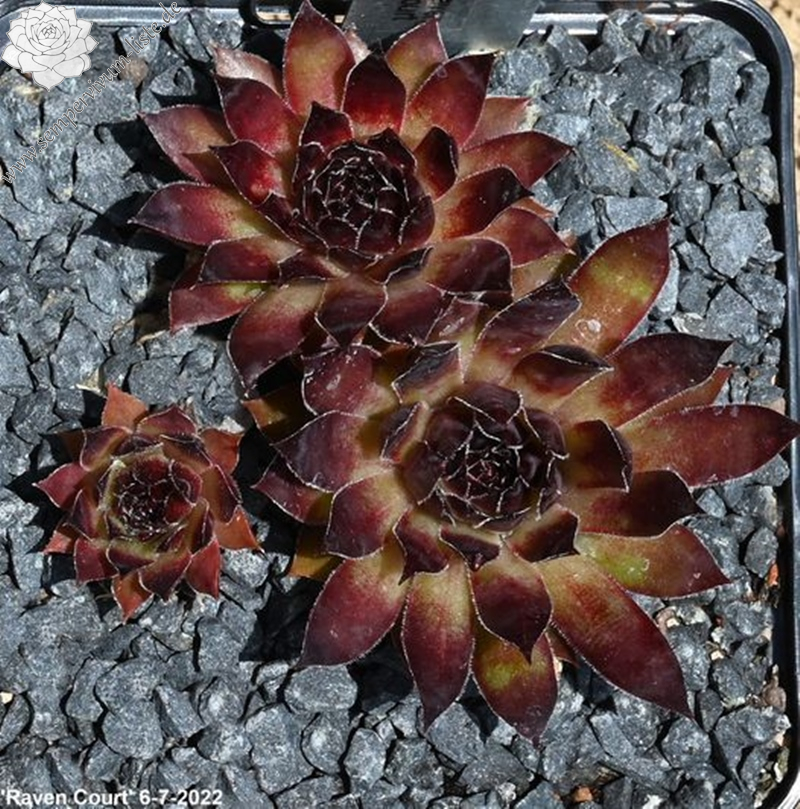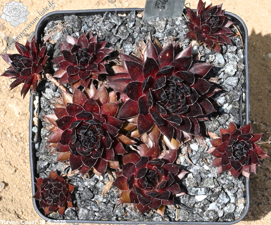 Sempervivum 'Raven Court' besitzt große Rosetten, mit spitzen Blättern. Die Pflanze zeigt eine tolle Färbung die sofort auffällt. Leider konnte ich die dunkle Färbung nicht auf Bildern richtig festhalten. Super!