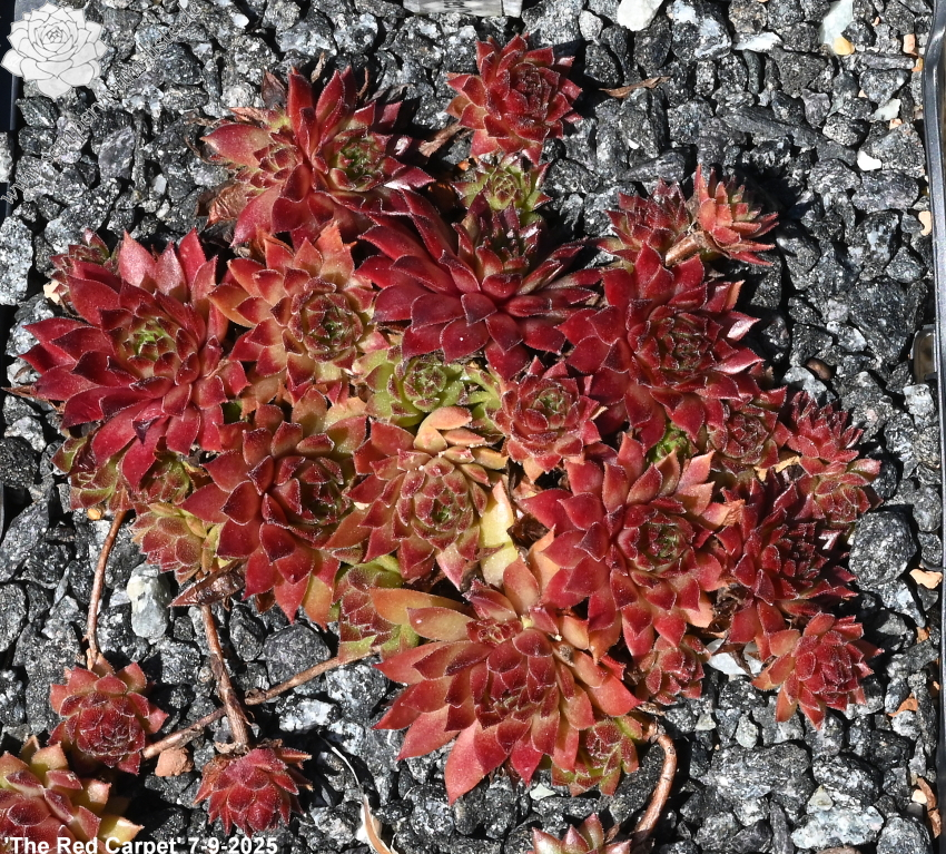 A fairly vigorous plant producing many offsets so the carpet effect happens quickly. Small rosettes in a glowing red colour in summer, glossy leaves.
