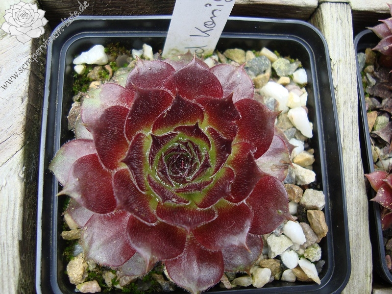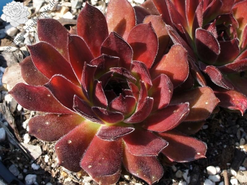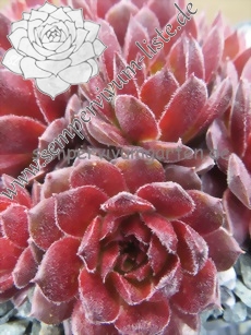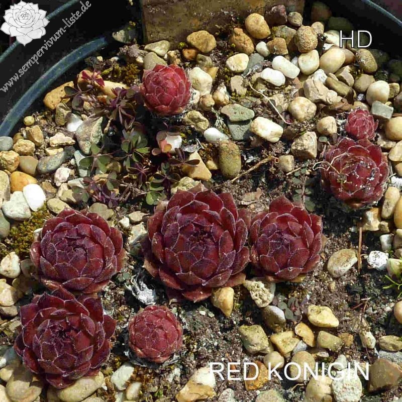 Sempervivum 'Red Königin' ist eine rote, leicht behaarte Sorte. Die wüchsige, mittelgroße Pflanze sprosst willig und bildet dichte Polster.