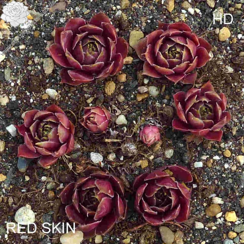 bis 8 cm große, offene Rosetten, innen grün, außen dunkelrot