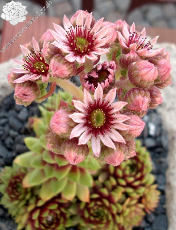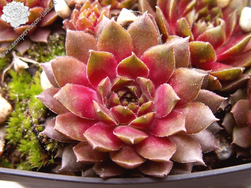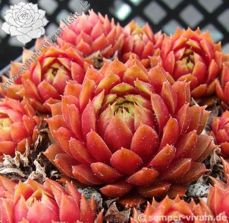 Eine entzückende Auslese aus Sämlingen von 'Zannalee'. Das Zentrum der kleineren Rosetten leuchtet während der Frühjahrsmonate in herrlichen Rottönen. Auch die Form der Blattrosetten hat ihren eigenen Charme - irgendwie anders als alle anderen. Besitzt große Ähnlichkeit mit der Sempervivum des Jahres 'Dr. Fritz Köhlein'!