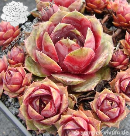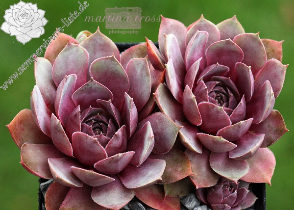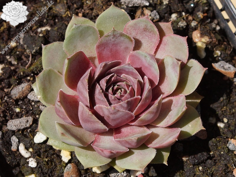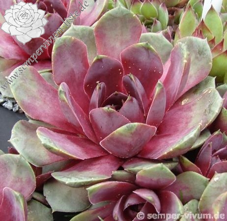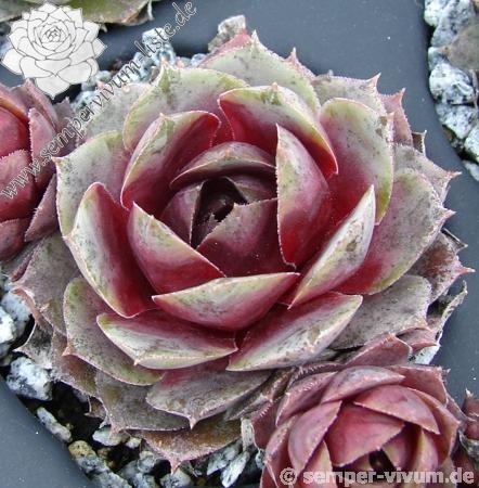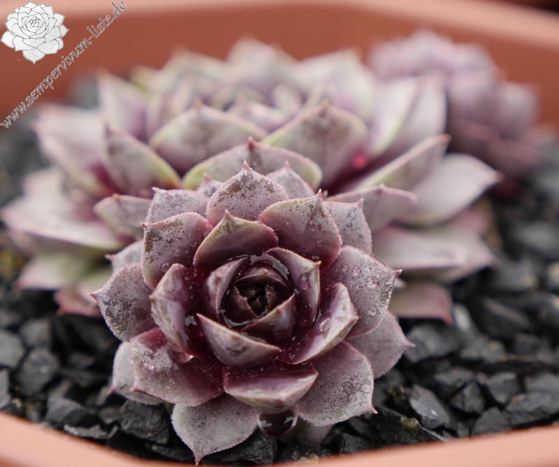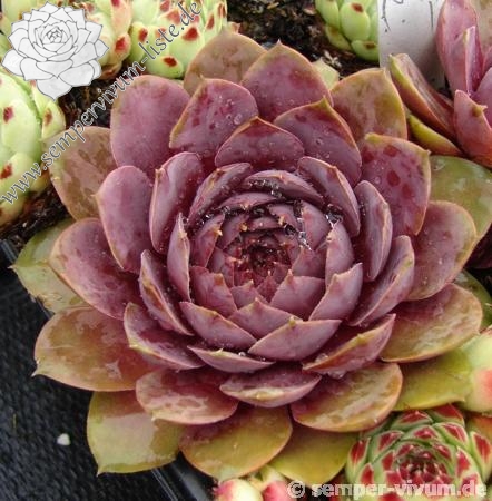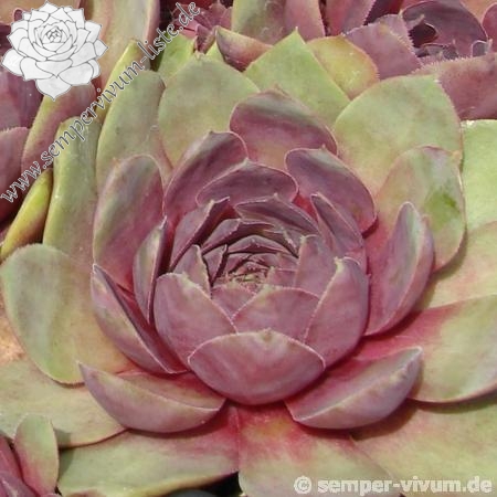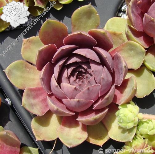 Eine Sämlingsauslese von 'Vasi Petru' mit reizenden, kugeligen Rosetten, die einen Durchmesser von etwa 10 Zentimetern erreichen. Die Blätter sind relativ breit und sehr sukkulent. Die Färbung variiert im Wandel der Jahreszeiten von verschiedenen Tönen in Rosa und Purpur bis zu Violett und pastellfarbenem Graugrün.
