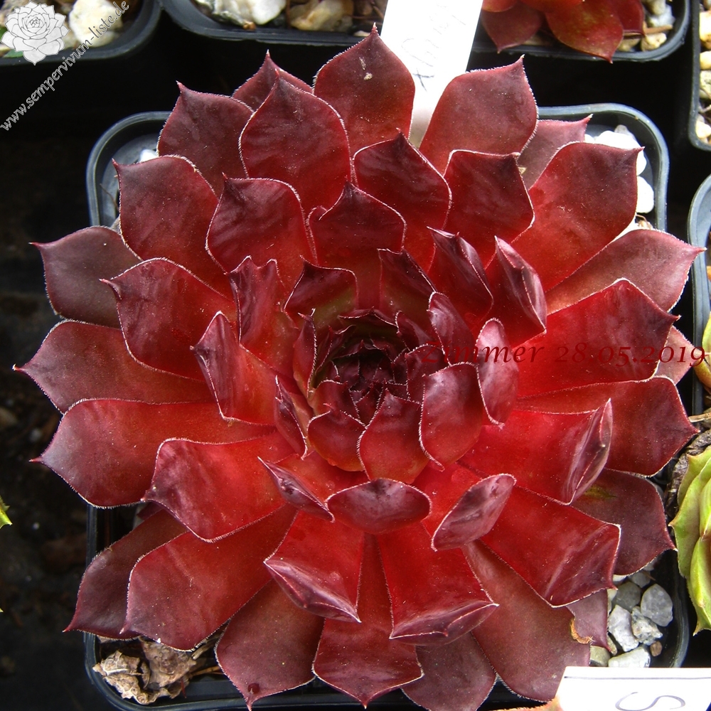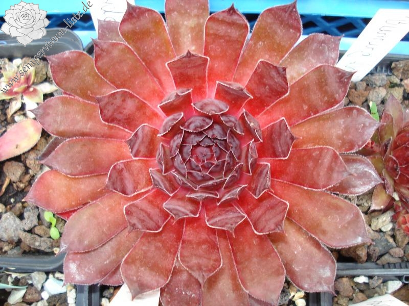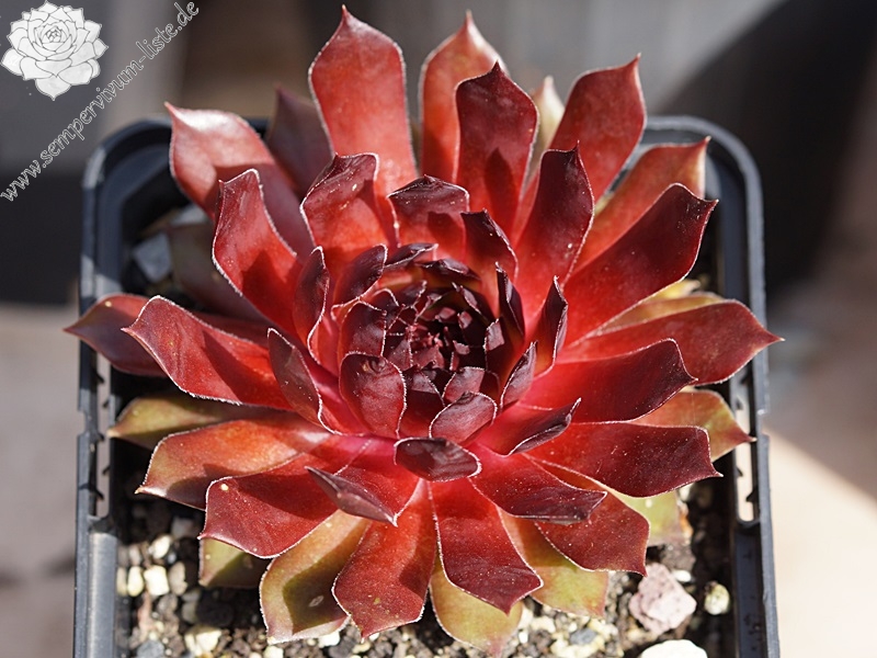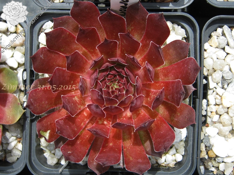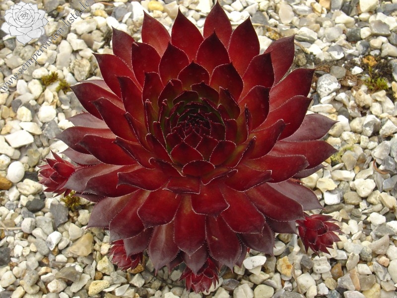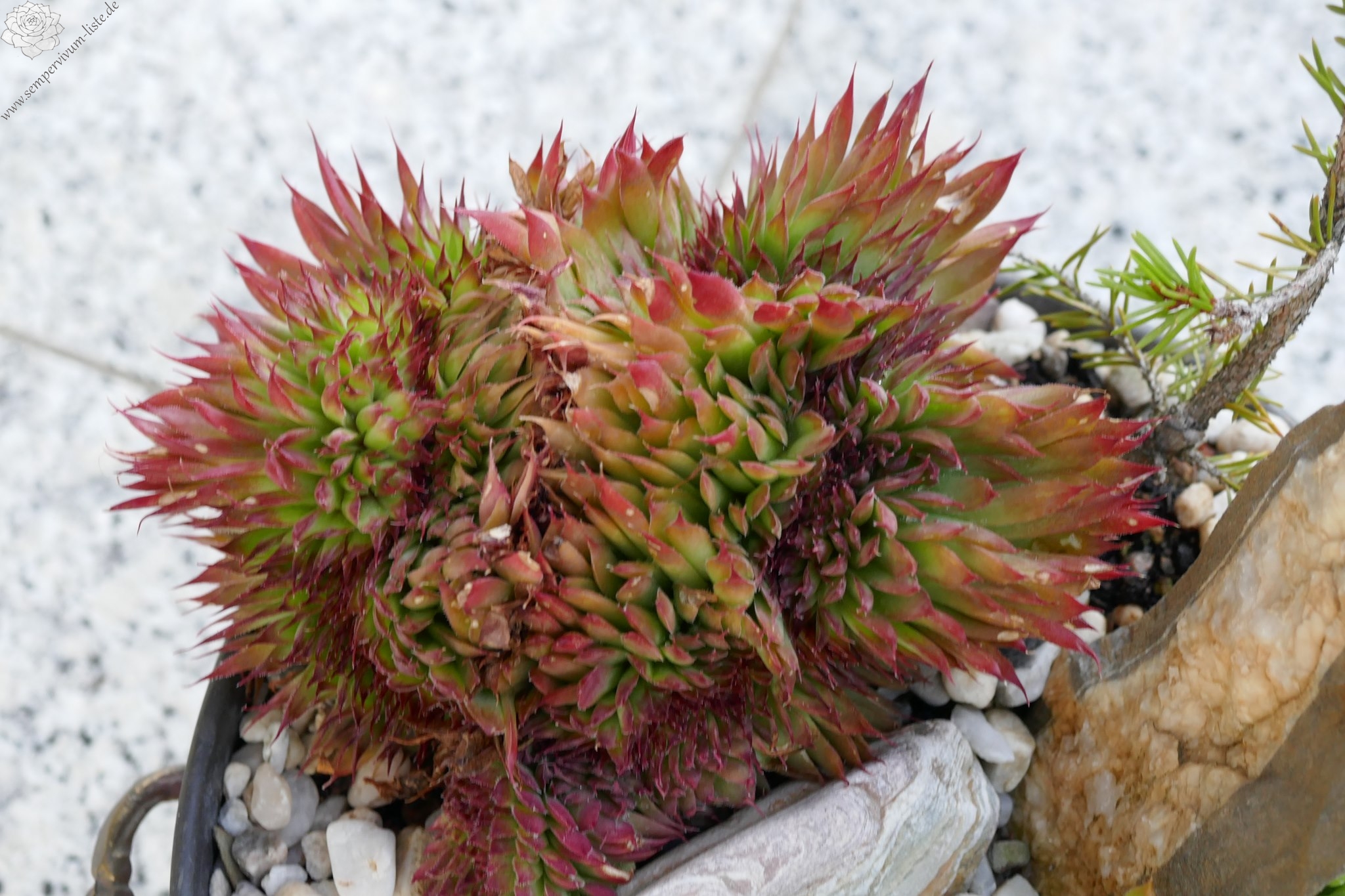 Sempervivum 'Sardonyx' ist eine größere Züchtung. Besonders im Frühjahr besitzen die Rosetten auffallend rötliche Farben. Im Sommer wird das Zentrum heller und zeigt schöne, grünliche Farben. Eine willig sprossende Pflanze.