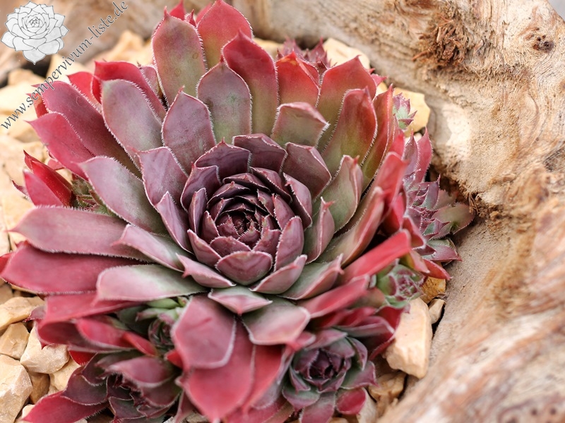 Die deutsche Kreuzung aus 'Purple King' mit 'Dark Cloud' wurde im vergangenen Jahr zur "Sempervivum des Jahres" gekürt. Mittelgroße Rosetten in attraktiver Form. Die dunkelviolette Färbung hält bis zum Sommer an. Ein Muss für jede Sammlung.