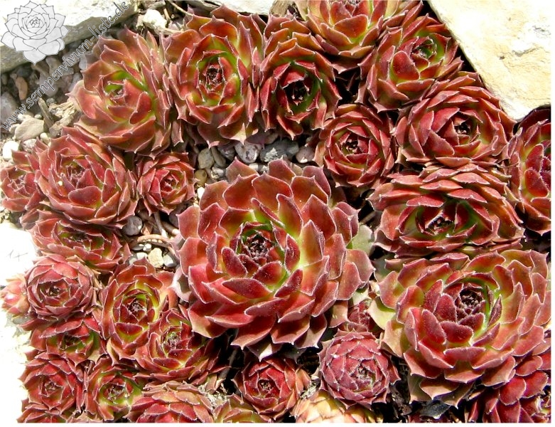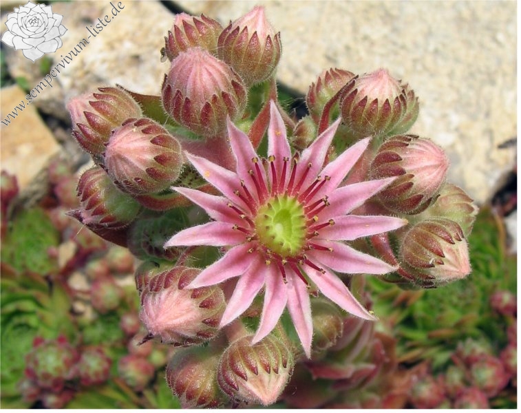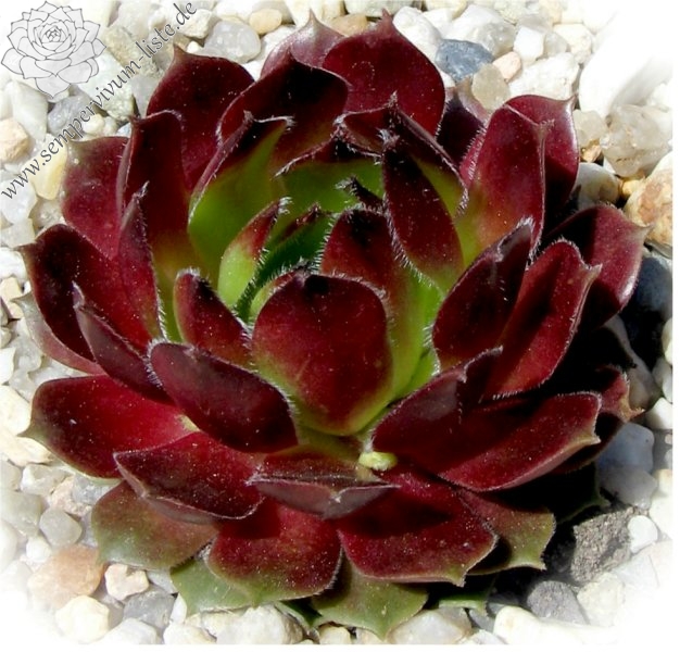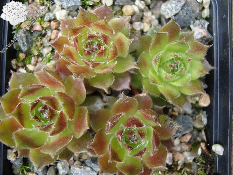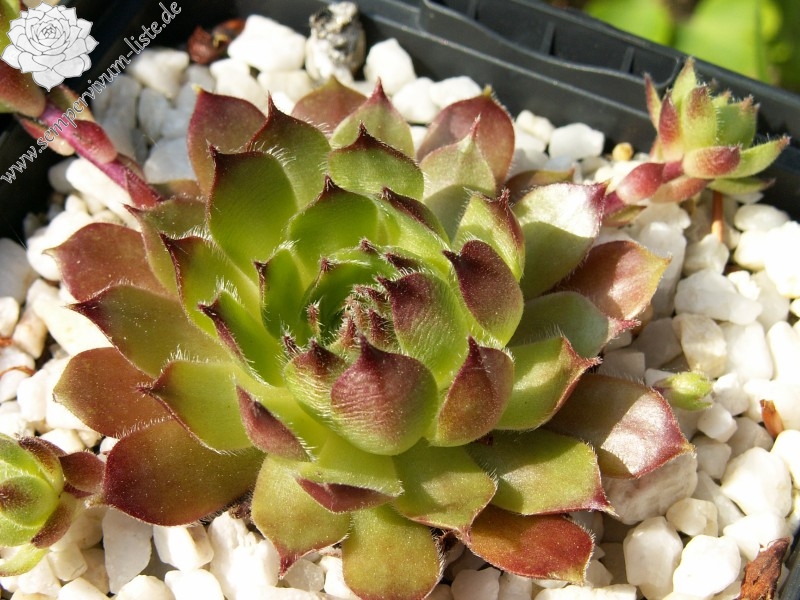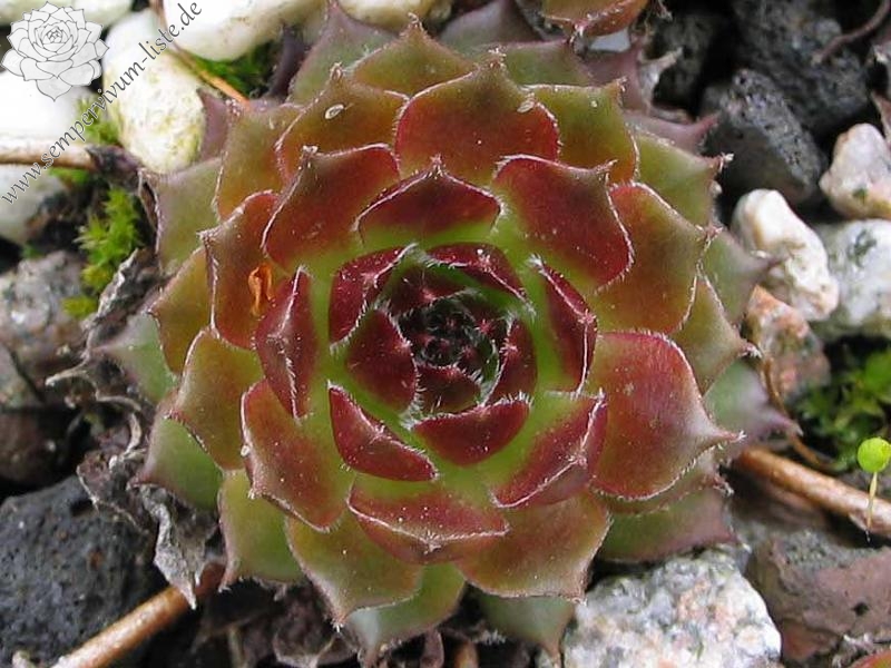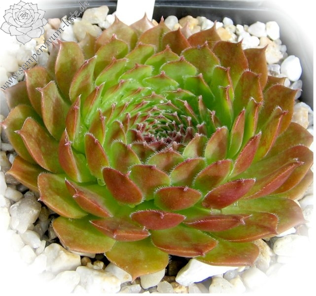 Original-Klon: Ros. 8-12 cm, breit, grünrosa, dunkle Spitzen im Winter, viele Ausläufer;