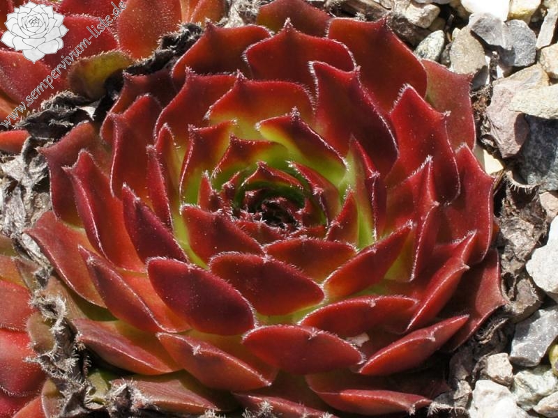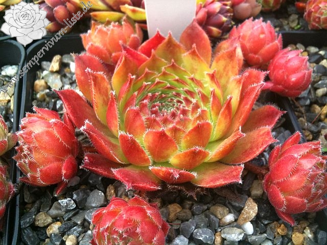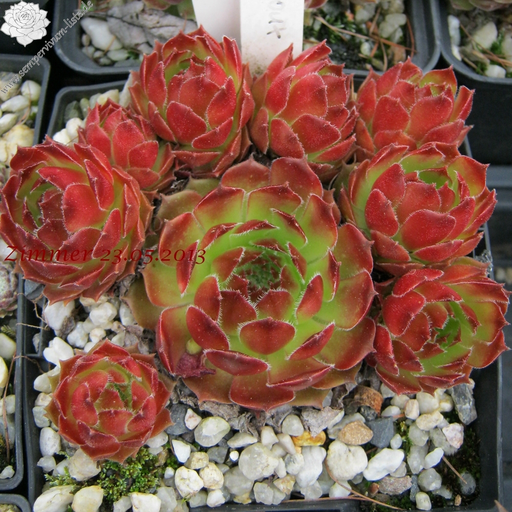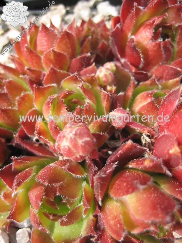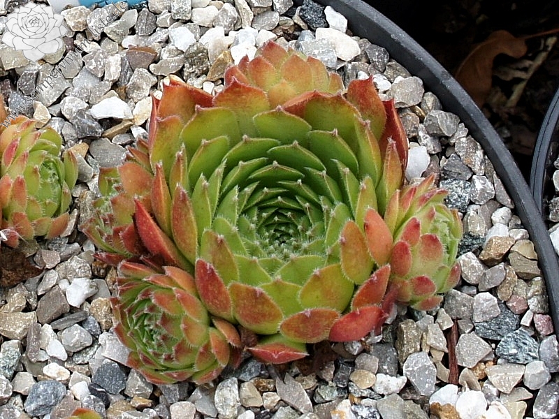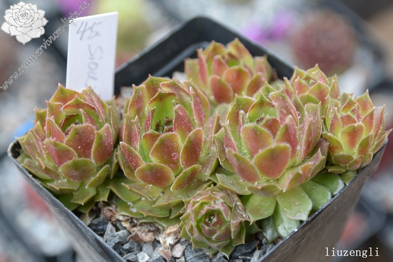 Original-Klon: Ros. 8-12 cm, breit, grünrosa, dunkle Spitzen im Winter, viele Ausläufer;