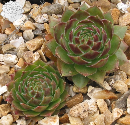 Eine bezauberne S. marmoreum 'Brunneifolium' - Hybride mit mittelgroßen, samtigen Rosetten mit relativ dicken Blättern in bräunlich-kupferfarbenen Farbnuancen. Zur kalten Jahreszeit mit auffallender rosa-bräunlichen Tönung; Langsam wachsend.