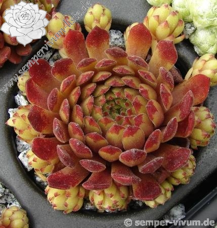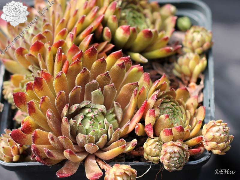 Sempervivum 'Space Dog' zeigt mittelgroße Rosetten. Er ist sehr wüchsig und bildet ganz dichte Polster. Besonders die Sommerfärbung gefällt mir gut.
