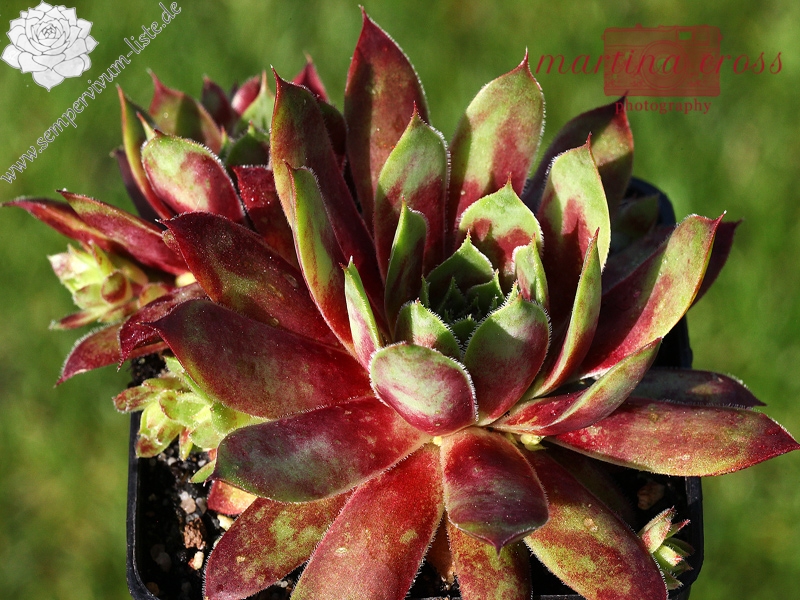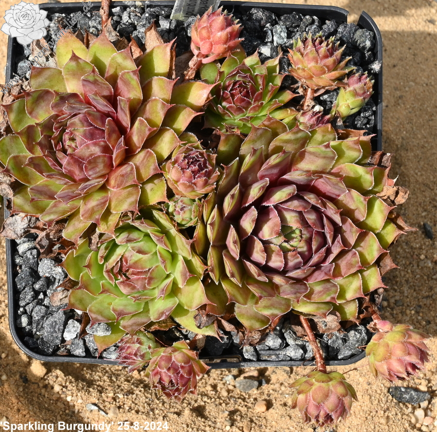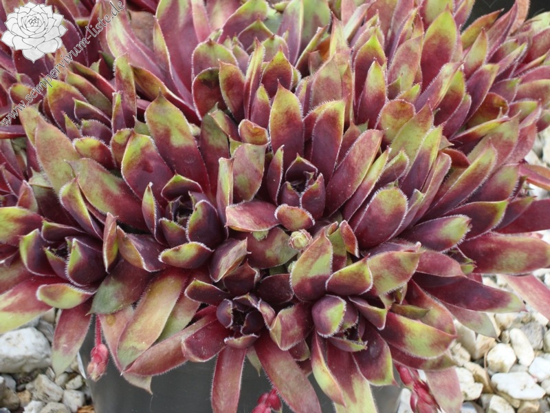 Sempervivum ‘Sparkling Burgundy’ ist ein größerer Hauswurz mit auffallend bunter Wirkung. Mir gefallen die offenen Rosetten, mit den breiten Blättern, sehr gut.