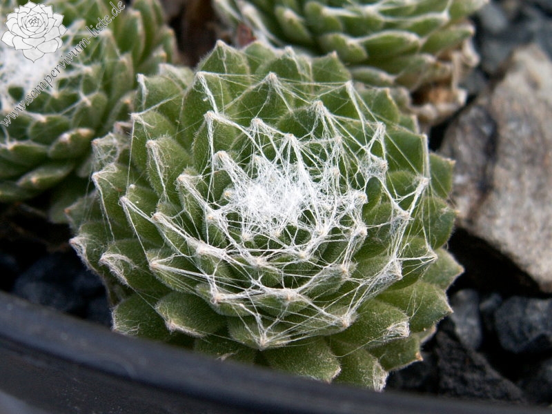 Eine neue Züchtung der Ingwers nursery aus Grosbritannien. Von dort stammen viele bewährte Kultivare aus dem Reich der Stauden! Sicherlich fragen sich viele, gibt es eigentlich noch Unterschiede der Spinnwebsorten, und ich stelle immer wieder fest - ja die gibt es! Die Rosetten dieser Auslese sind relativ groß und werden oft von den Nachbarrosetten eingedrückt.