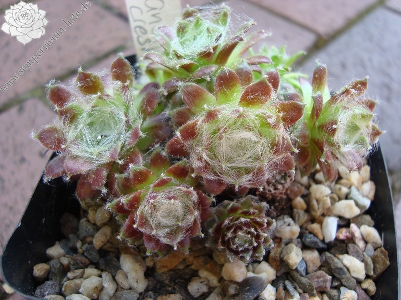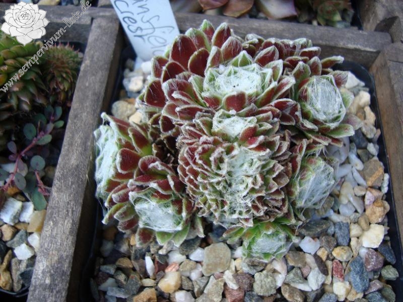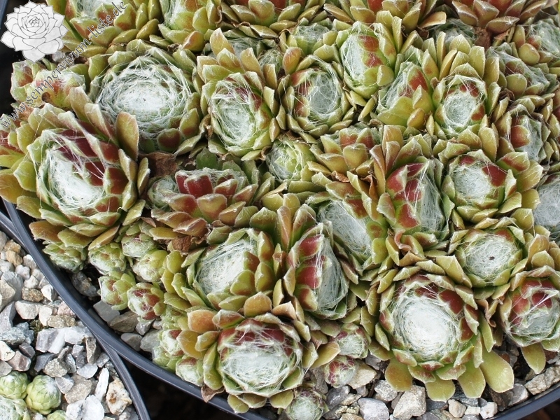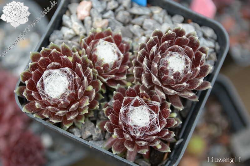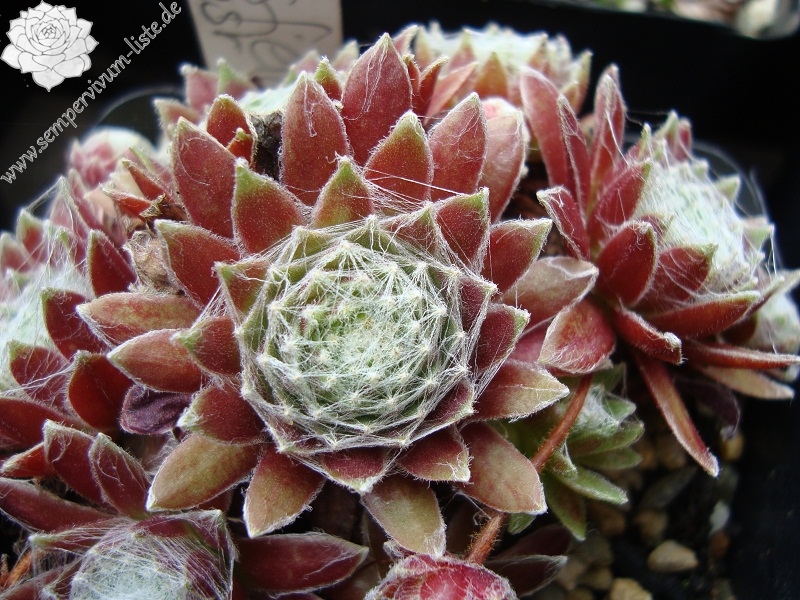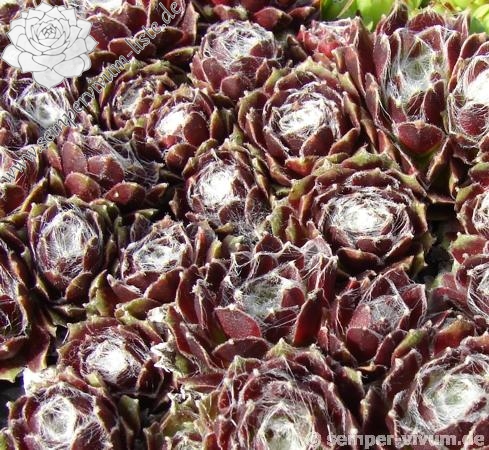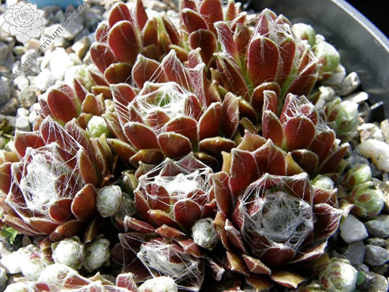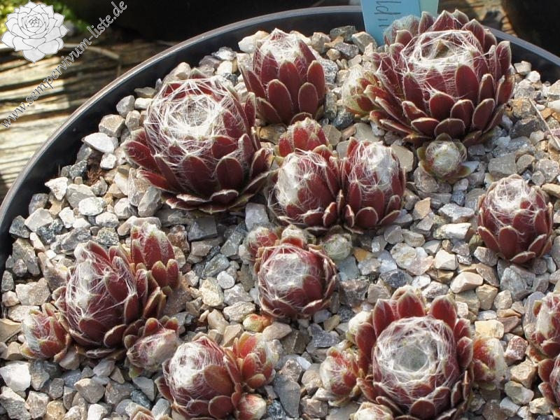 Eine sehr attraktive Form, seit langem, aber dennoch mittlerweile selten in Kultur. Dieser Spinnwebtyp bildet in kurzer Zeit dichte Polster, die sich im Frühjahr ins dunkelste Rotbraun färben. Es gibt einige Sorten die genau so aussehen und dazu auch noch Cristaten bilden: 'Hodi's Star, 'Rothaut', 'Roter Kristall', 'Schwarze Witwe' und auch noch 'Spiderman'. Fraglich ob es sich hier wirklich nicht um denselben Klon handelt, da von mancher keine Herkunft bekannt ist! Aber es sind bekanntlich auch vererbbare Chromosomen möglich.