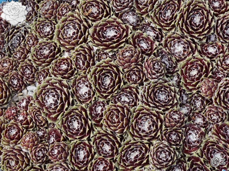 ca. 2 - 3 cm große Rosetten, flach, blutrot, silbrig übersponnen