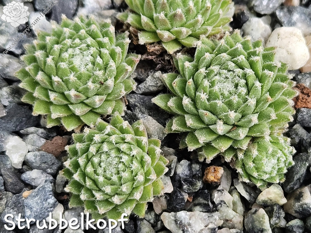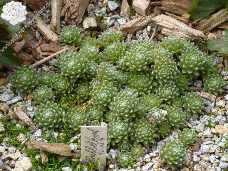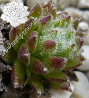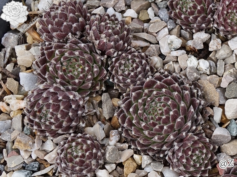 Eine weitere Neuheit aus Herrieden: Die Auslese einer Absaat von Sempervivum 'Koko Flanel' formt 4 cm große, stark behaarte Rosetten. Die Blattspitzen wirken wie mit Wattebäuschen besetzt. 'Strubbelkopf' bildet schnell dichte Polster!