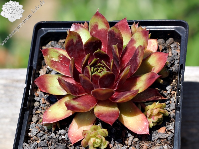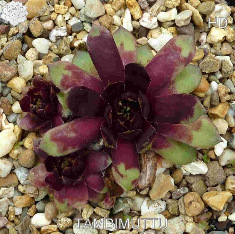 Sempervivum 'Tambimuttu' ist eine toll gefärbte Pflanze, die mir im Sommer sehr gefällt! Die Rosettenblätter machen einen sehr breiten und festen Eindruck. Die Färbung ist wirklich einzigartig! Leider sprossen die Pflanzen nur mäßig.