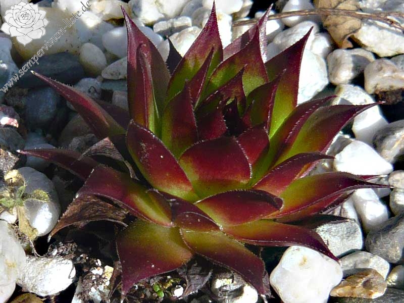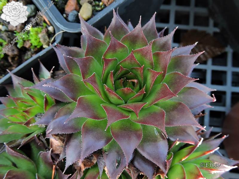 Erwin Geiger: Einer unserer Lieblinge unter den Lokalformen der Art Sempervivum tectorum. Gleicht einer großen 'Sunset' mit dunklen rotbraunen, lang gezogenen Blattspitzen. Brillant!PH474