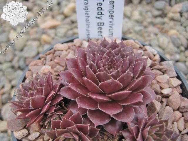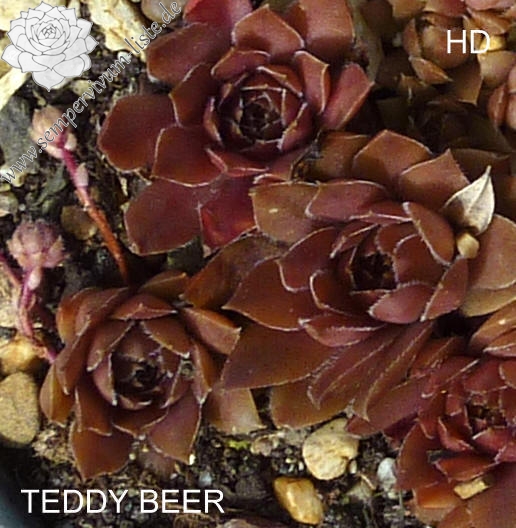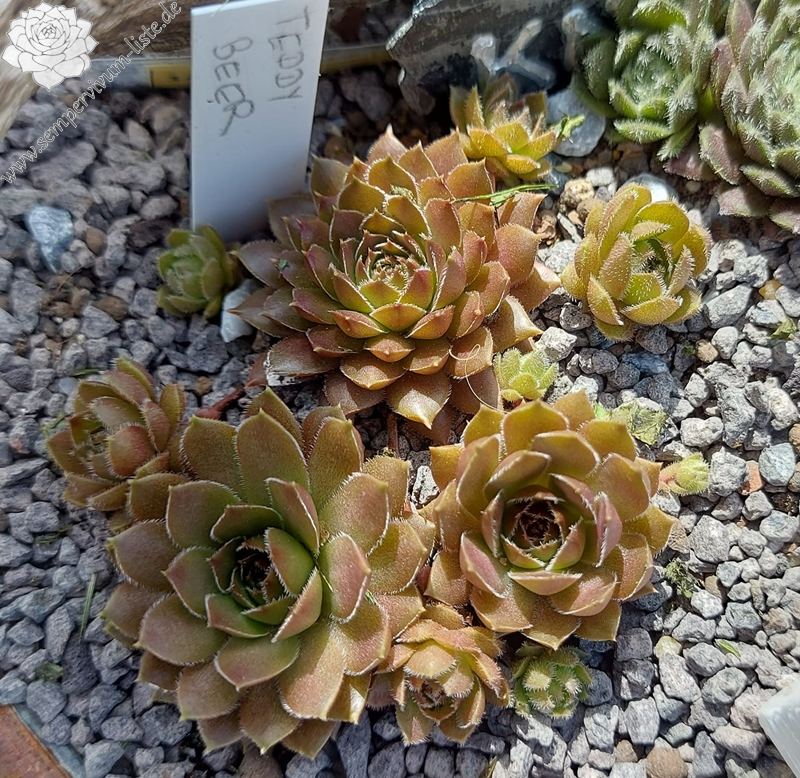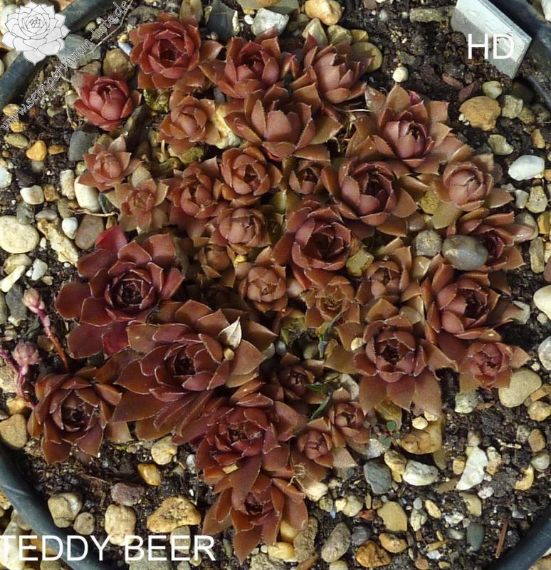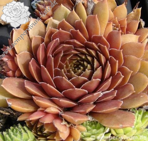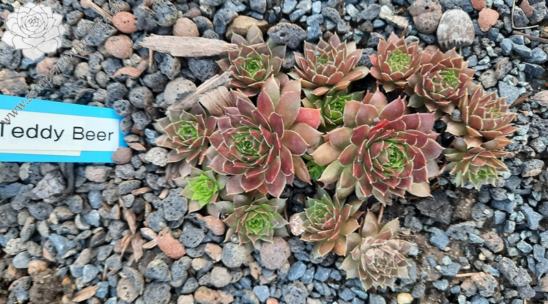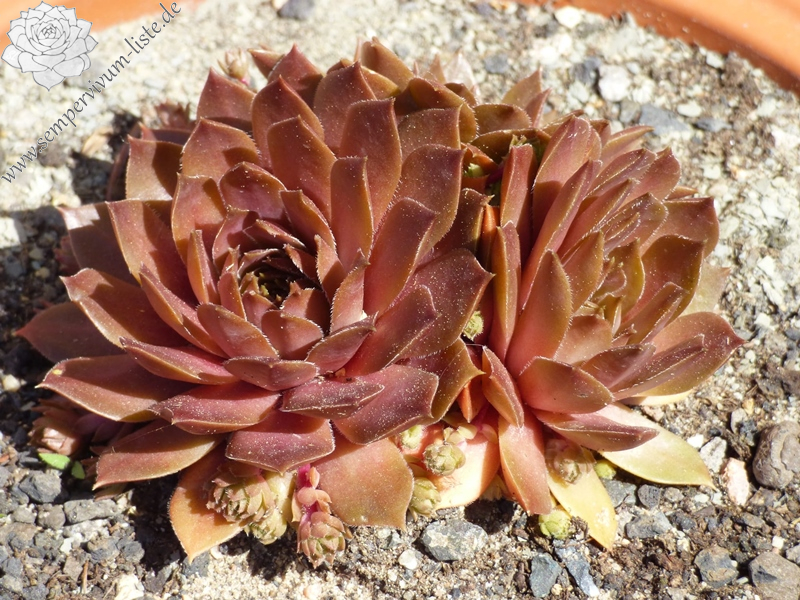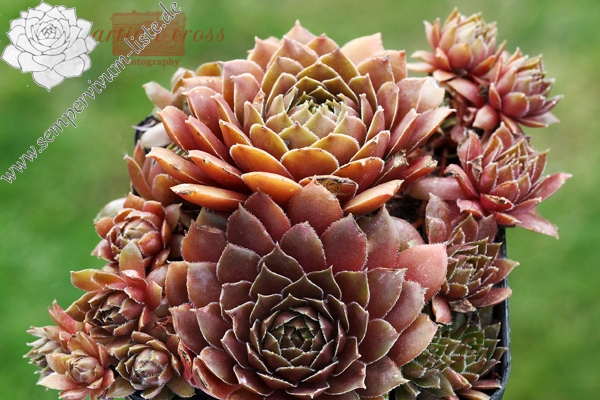 Es gibt schon einige Hybriden mit der gleichen Färbung. Insgesamt mit kleineren Rosetten und etwas kompakter wachsend als die bisher bekannten braunen S. marmoreum Hybriden.