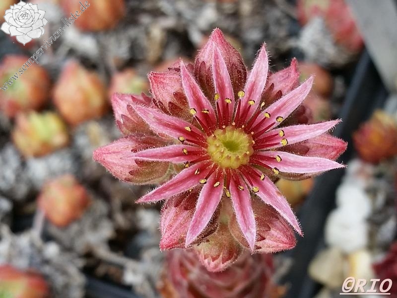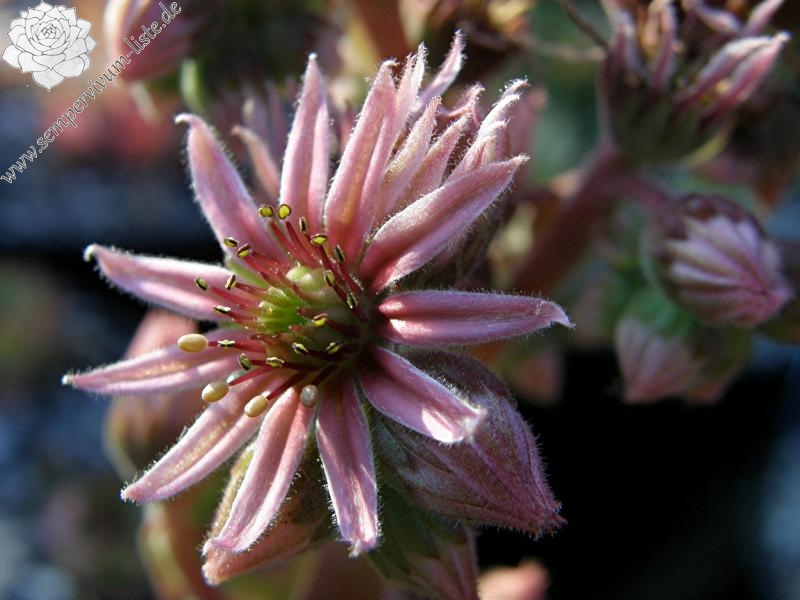 Ros. 3 cm, blaugrün, außen braun, stark bewimpert, lange Ausläufer. Blütenknospen M VI/04.