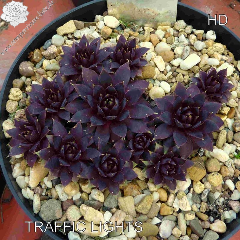 Sempervivum 'Traffic Lights' bildet schöne, große Rosetten. Die Rosetten erreichen einen Durchmesser von über 11cm und sprossen willig. Besonders schon sind die ganz hellgrünen Blattspitzen. Eine tolle Pflanze, die wirklich ein auffallendes Leuchten besitzt.