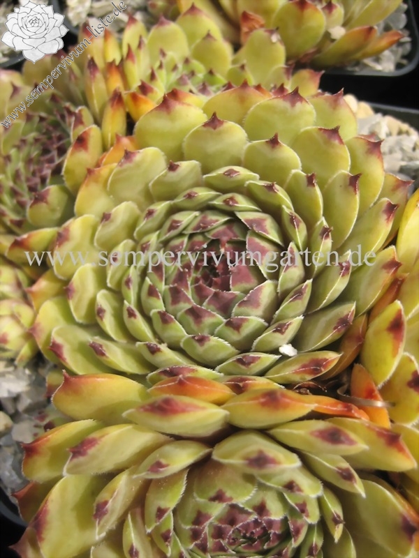 Eine tolle Züchtung die rund ums Jahr eine schöne Färbung zeigt. Erhielt 1975 einen Award Merit – höchste Auszeichnung der damaligen Sempervivumgesellschaft.