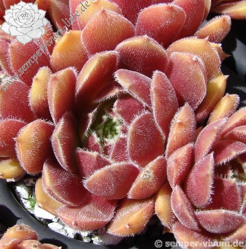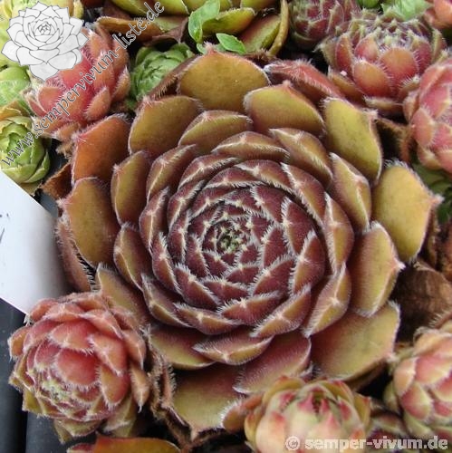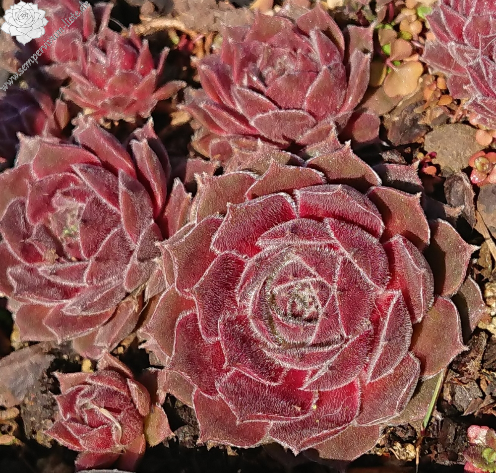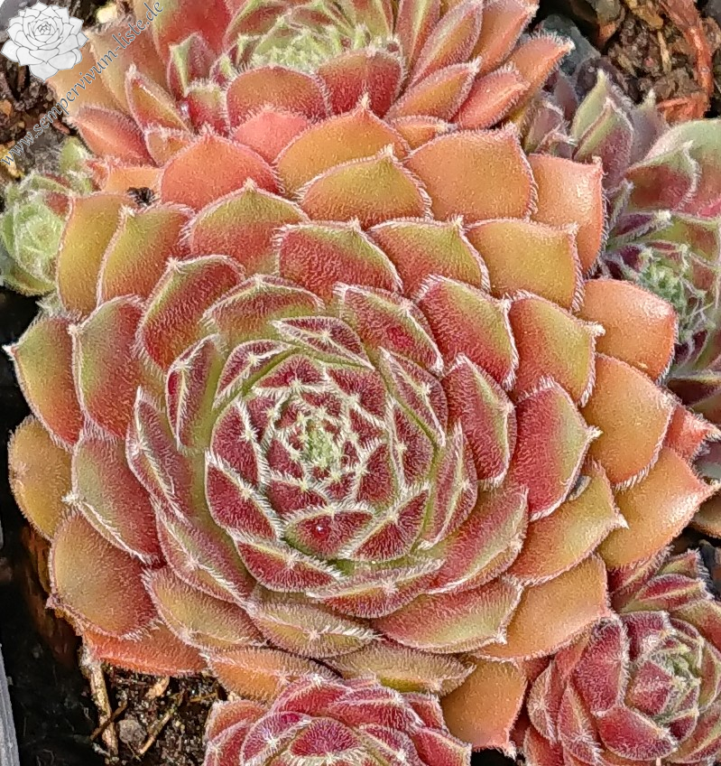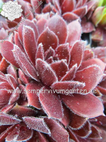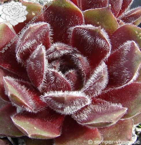 Ein kompakter Wurz mit purpurnen Tönen, die zeitweise auch ins apricotfarbene Milleu abfärben. Die Blätter sind sehr sukkulent und auch auf der Oberfläche bewimpert, wodurch sie samtig erscheint.