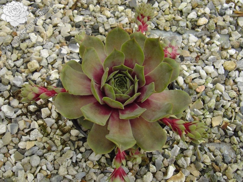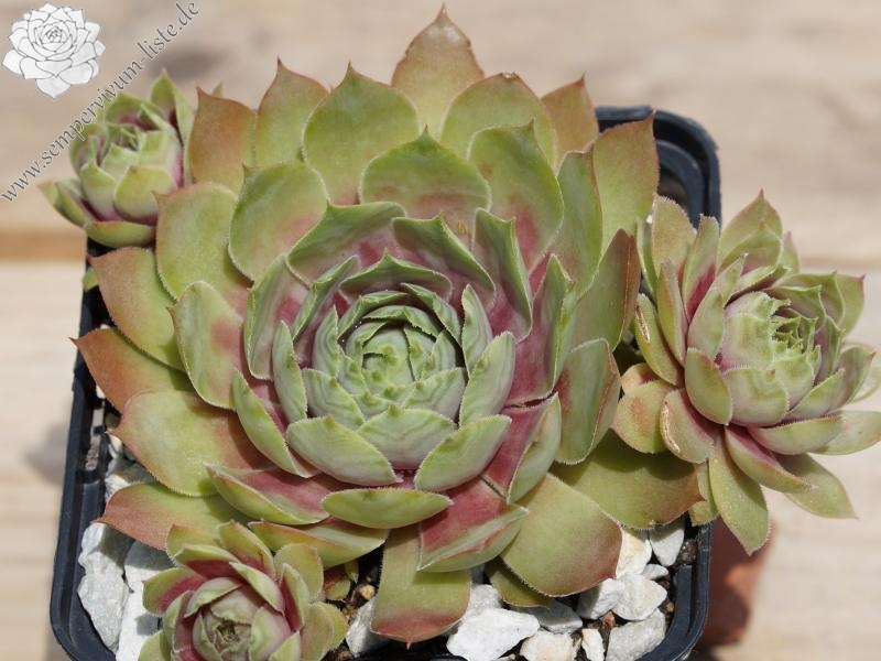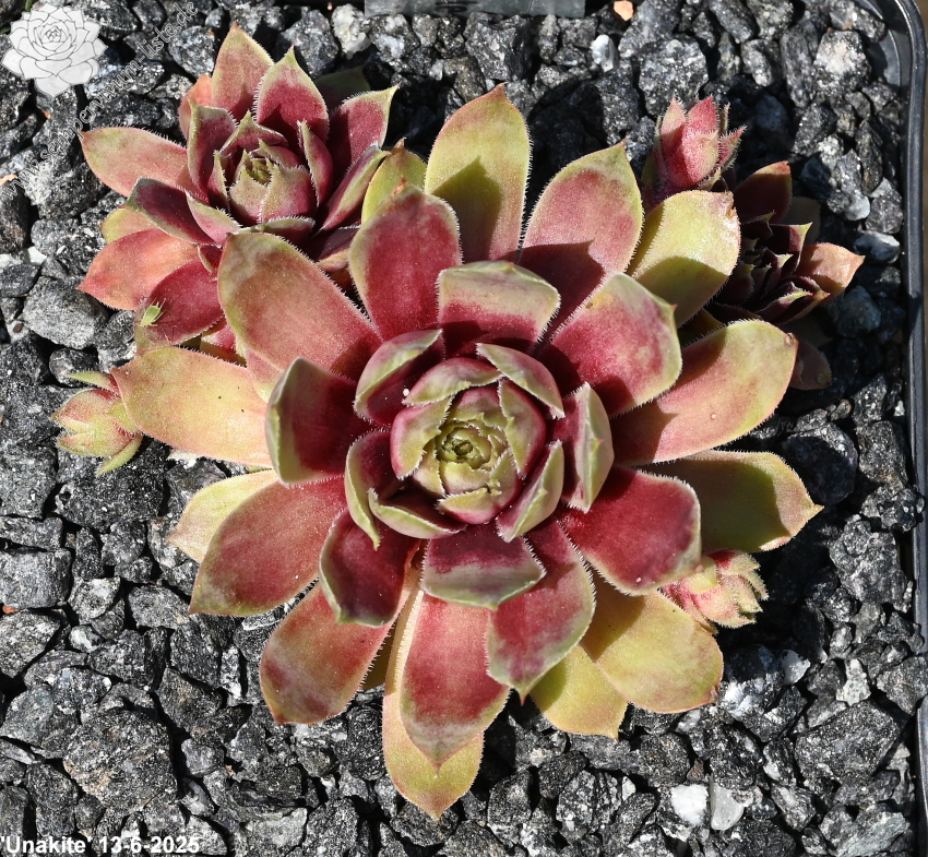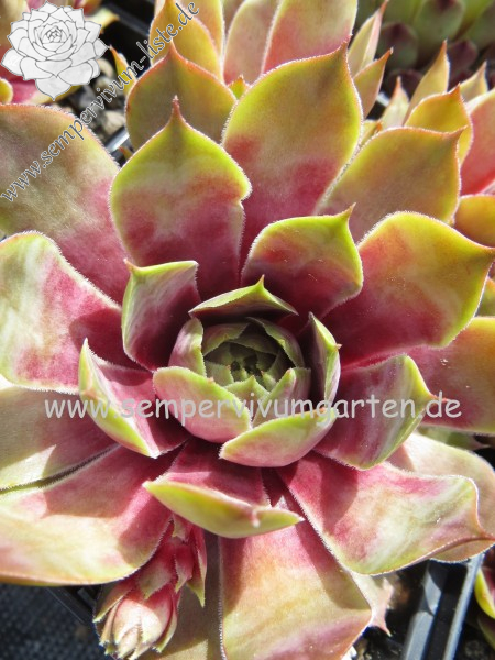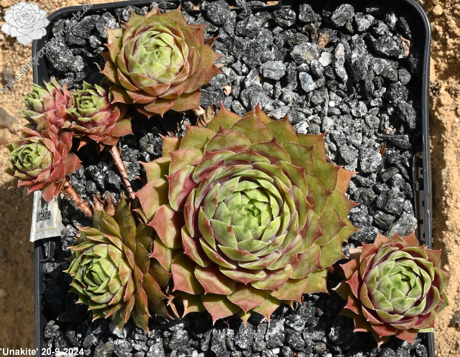 Sempervivum ‘Unakite’ ist ein großer Sempervivum mit einer hellen Grundfärbung. Im Zentrum bleiben die rosa Farben gut erhalten. Die Rosetten besitzen eine gute Wirkung! Sie zeigen sich als wüchsig und robust!
