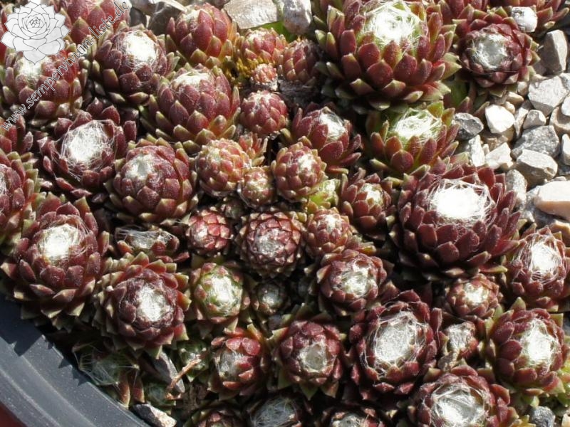 Diese Pflanze steht schon seit vielen Jahren, mit dieser Bezeichnung, in meiner Sammlung. Ich habe sie mal mit einem Schweizer Pflanzenfreund getauscht. Die Bezeichnung ist bestimmt falsch! Jedoch gefällt sie mir so gut, dass ich sie gerne behalte und weitergebe. Man wird sie mit Sicherheit nie genau zuordnen können und so bleibt sie bei mir unter diesem Namen erhalten. Die im Zentrum stark besponnenen Rosetten bilden ganz dichte, feste Polster. Die Rosettenränder behalten ihre grüne Farbe. Sie zeigt nur selten Blüten!