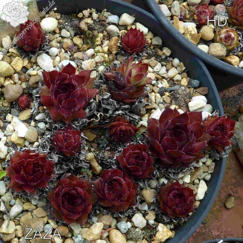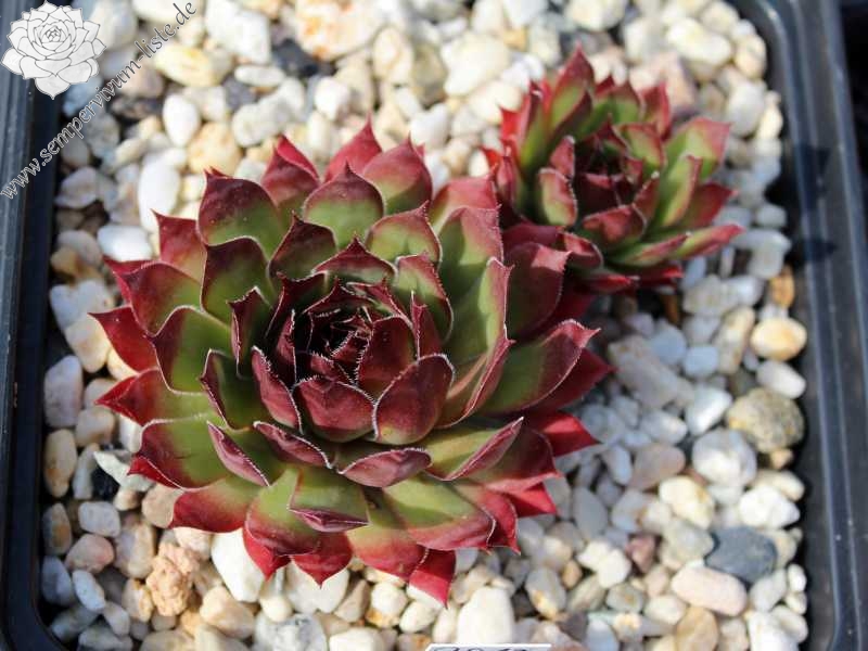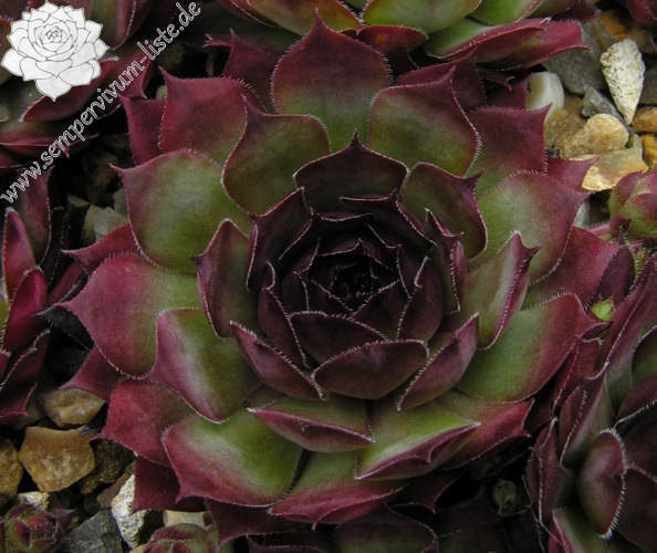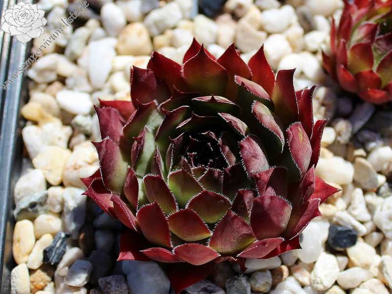 Mittelgroße Rosetten mit stark zugespitzten Blättern, die stark bewimpert sind und eine weinrote Frühlingsfärbung aufweisen.