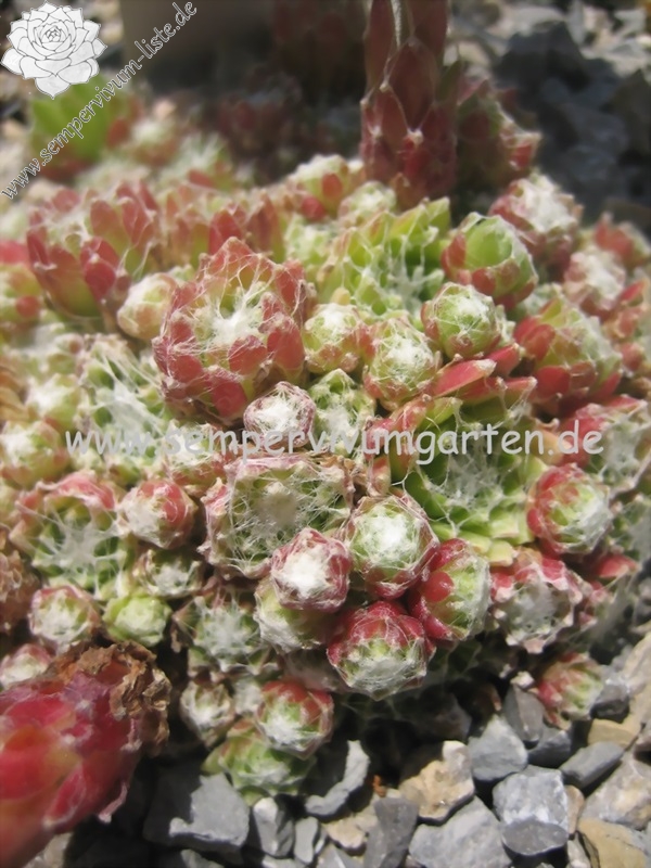 Hier haben wir einen sehr kleinen Vertreter der Spinnweb-Familie. Die zierlichen Rosetten erreichen selten einen Durchmesser von 1cm. Es handelt sich zwar um eine wüchsige Pflanze, die jedoch wegen der geringen Größe keine flächigen Polster zeigt. Am besten teilt man ihr einen etwas geschützten Platz zu, damit sie nicht verloren geht. Es wäre schade um diese farbenfrohe Pflanze!